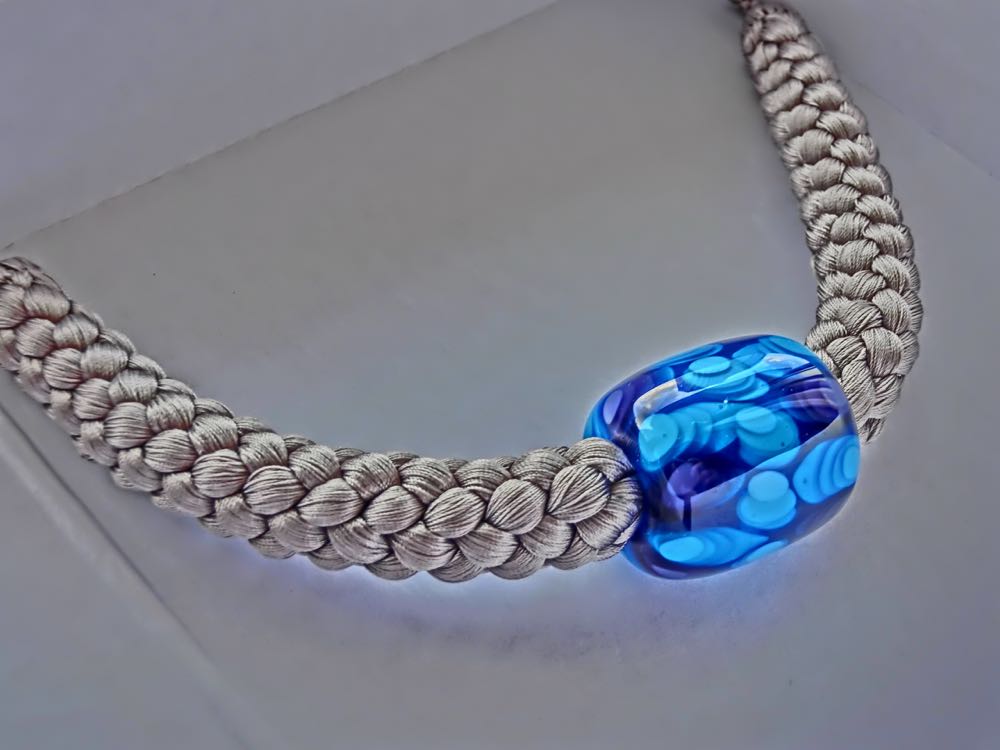 香川県のガラス工房にのみや あ〜とさんに特注したとんぼ玉の羽織紐が出来上がってきた。東京の百貨店の催事に頻繁にいらしているので、以前もこちらでとんぼ玉の羽織紐を購入したことがある。最近は、羽織紐の展示即売がなかったのだが、5月に銀座の三越での催事の際に聞いてみたら、作ってもらうことも可能ということで、展示されているものからイメージを選んで、組紐の職人さんにも連絡してもらった。それからとんぼ玉の制作に入り、組紐を付けてもらい、次回の三越の展示で受け取ることにしてた。 |