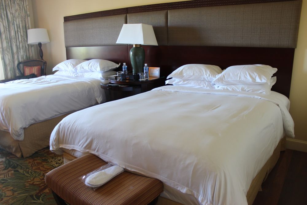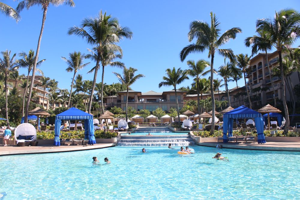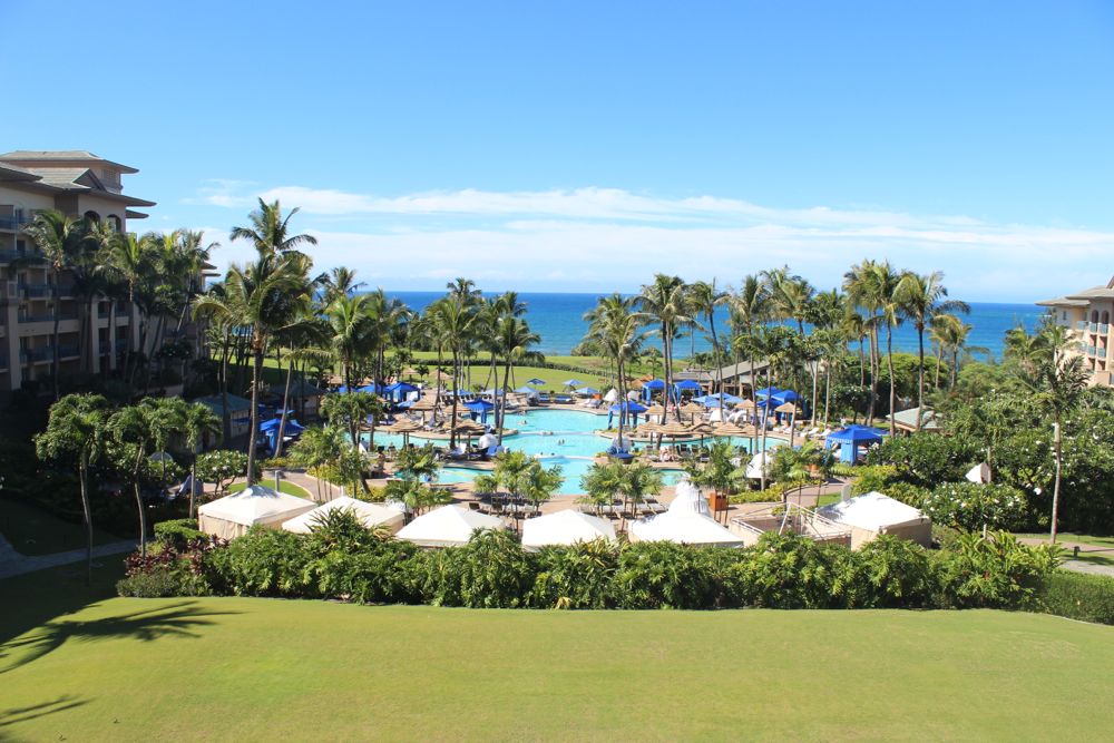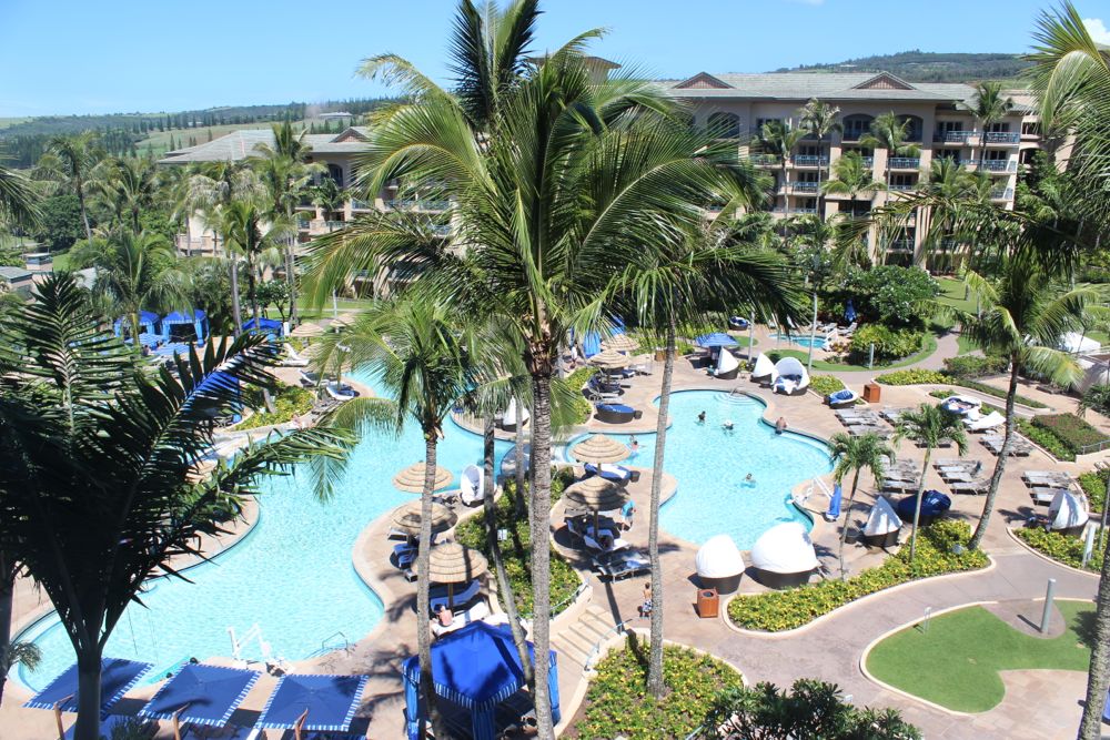 カフルイ空港から約1時間のドライブでザ・リッツ・カールトン カパルアに到着。ハリケーンの心配が嘘のような晴天。緑と青の世界が美しい。 予約して一週間前にリッツから「何かお手伝いできることはありますか?」とメールが来て、ハリケーンの具合が心配だと返信したら、そこから毎日、現地のハリケーン情報をメールで送ってくれた。こういう対応がリッツなのだな。 プール側から見たロビー。正面の2階部分がロビーだが、斜面に立っているので実際は6階だった。ロビー下が朝食・昼食がとれるテラス・レストラン。 プールは3段になっていて、それぞれ最深部の深さが違う。他に幼児用の浅いプールもある。宿泊棟は、プールの左右に伸びている。向かって右側の棟にクラブ・フロア、売店、フィットネス、スパ、日本語デスク、ツアー・コンシェルジュなど施設が集中している。 部屋は、全室ラナイ付き。海は、オン・ザ・ビーチとは言え、ちょっと遠い。 プール、ジャクージーは、なんと24時間営業。ただ、監視員はいない。自己責任ということか。夜の誰もいないプールを独り占めというのは、ちょっと素敵かも。 部屋の雰囲気は、こんな感じ。スリッパは、他のリッツに比べるとちょっと薄っぺらい。ベッドは、大きくまた床から高く快適。