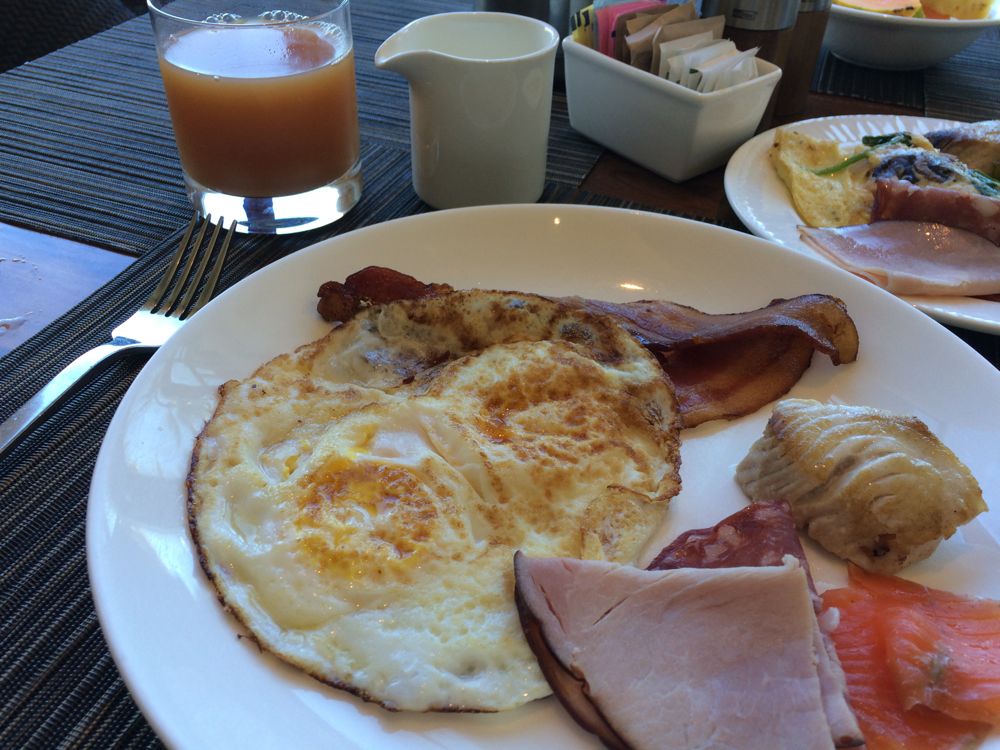 朝食は、こちらのレストランでビュッフェ。スタッフは、てきぱき動くね。二人ほど無愛想で頼んだことを忘れていなくなる人がいたけど、それ以外のスタッフは、とってもプロフェッショナルだった。
