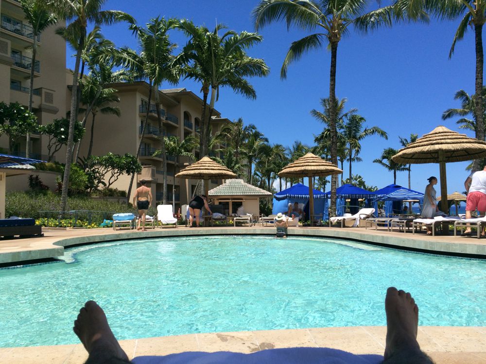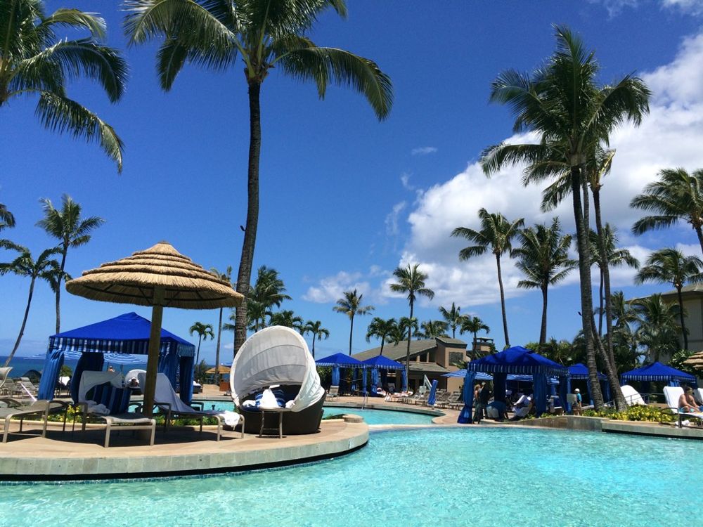 マウイに来るのは二度目。ハレアカラ、ラハイナ、イアオ・ニードル、ワイレア、ハナと主要な観光地にはもう行ったことがある。宿泊しているカパルア周辺には、何もなく、この何もないのを楽しもうと、ホテルのプールサイドのデッキチェアでぼうっとしていた。青い空、白い雲、椰子の木に囲まれ、何にもしない贅沢を満喫。 デッキチェアにいるとホテルスタッフが時折、おしゃべりに来る。プールサイド・バーでは、飲み物と軽食を提供しているので、注文もとってくれる。モヒートを頼んでみた。うーん、アマンだとグラスでサーブされるのにな。ここでは、プラスティックのカップだった。 ぼうっとしているとだんだんと雲が増えてきた。それも灰色の雲。飲み物の注文を取ってくれたJefferyさんがやってくる。「これから雨になるから、有料のカバナへ無料でご招待しましょう」とのこと。これはありがたいということで、本来有料のカバナへ移動。 大きなテントのカバナ、広い。 なんとテレビや冷蔵庫まで揃っている。冷蔵庫の中の飲み物は、飲み放題だよって言われたけど、さすがにそれは恐縮してしまって手をつけず。それにしてもプールサイドにテレビと冷蔵庫とはびっくりした。 天井には、南国らしい扇風機。テントの中は暑いけど、これを回すと涼しい。 ソファも広くてすごい。プールサイドで大きなソファに横たわり、テレビを見ながら冷蔵庫から飲み物なんて、アラブの王侯貴族の雰囲気じゃん? やがて、スコールがひどくなる。ホテルスタッフも居場所がなく、カバナにいるお客を雨宿りをかねて尋ねてお喋り三昧。うちのカバナにも頻繁にやってきてお話したけど、楽しかったよ。「有料カバナに招待してくれて、ありがとう」って言ってたら、「今、誰も使ってないし、この雨の中、一人でも多くの人がハッピーになれば、僕も嬉しい」と。ああ、こういうのがリッツ・カールトンなのだなあ。 小ぶりになったタイミングでホテルの部屋へ避難。スコールが過ぎると虹が現れる。これがハワイだね。 |