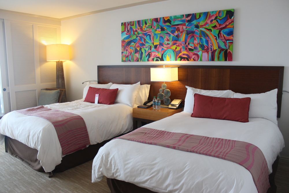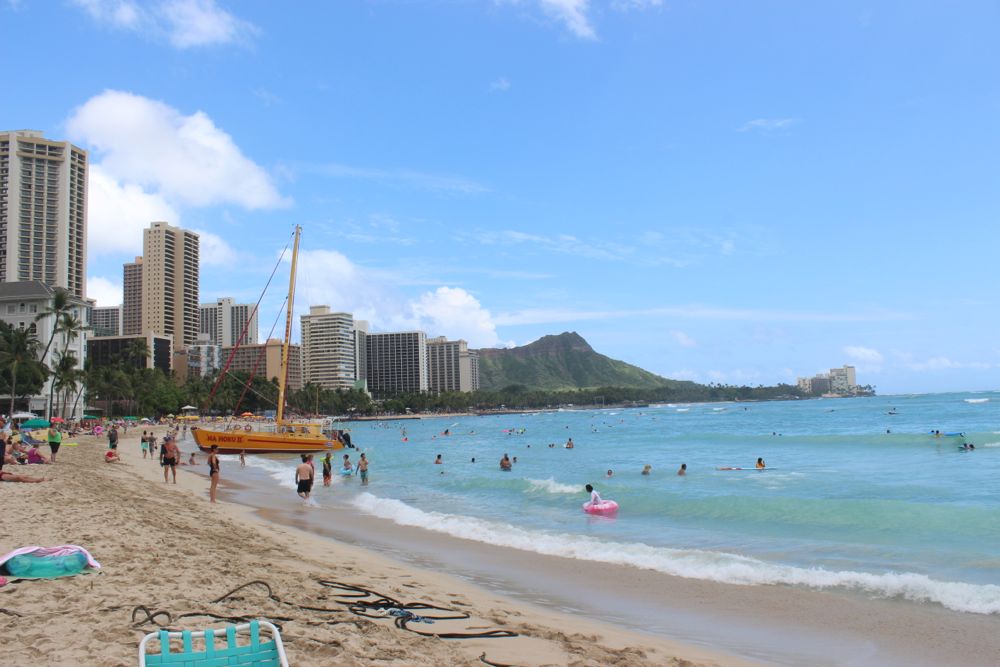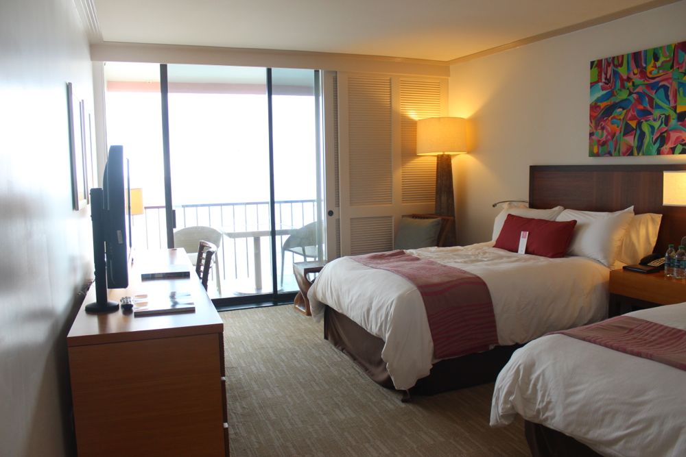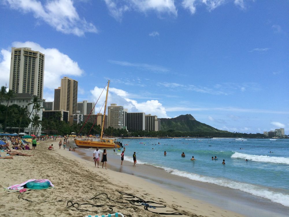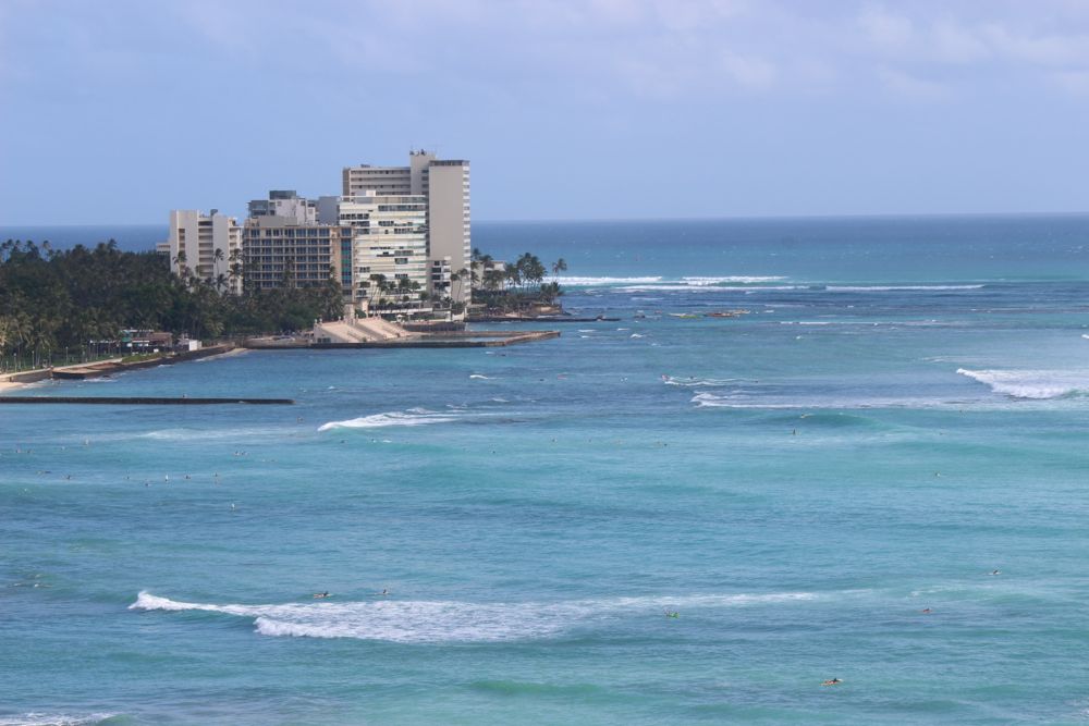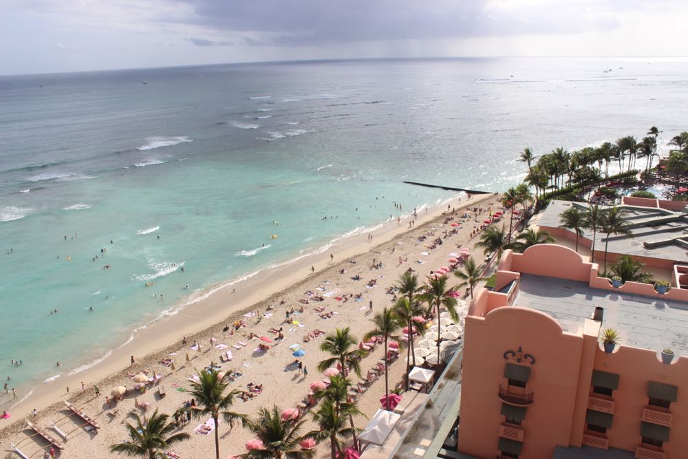 前日のテレビのニュースで、オアフ島がまた豪雨でホノルルのダウンタウンが水浸しの映像が流れていた。そんな不安の中、快晴のマウイ島のホテルを出て、タクシーでカフルイ空港へ。宿泊していたカパルアは、カフルイ空港から車で一時間ほど。往復のタクシー代(チップ込み)だけで240ドル。うーん、かなりの出費だ。小さな飛行機なら、すぐ近くのカパルア空港を利用できたみたい。そこからなら、カパルア・リゾートまで無料のシャトル・バスを利用できた。 ホノルル空港に到着。灰色の雲が広がるものの、ワイキキの方面は晴れていた。ターミナルを出てタクシーを拾う。昨夜の天気のことをドライバーに聞いたら、ものすごい豪雨で昨日は仕事を切り上げ早く家に帰ったとのこと。今日も危ないよって言ってたけど、結局滞在中雨は降らなかった。ハリケーンと豪雨を避けることができてラッキーだった。 ワイキキで泊まるホテルは、いつも悩むのだけど、やはりオン・ザ・ビーチのホテルがいいよなあと思いロイヤル・ハワイアンにした。オン・ザ・ビーチだと値段がはるのだけど、やはり目覚めて窓を開けた時に、青い海が広がっている方がいいよなあ。 タワーの部屋にした。タワーは、全室クラブレベルで、こちらのラウンジを利用できるのだけど、狭いし、朝とカクテルタイム以外に飲み物すら置いてないし、コンシュエルジュがいない時間もあるし、なんだかなという感じ。朝食もコンチネンタルのみだったので、結局一度も利用せず。以前宿泊したハイアット・リージェンシーのクラブレベルの方が相当グレード高いなあ。まあ、雰囲気はいいんだけど。 それでもやはりオン・ザ・ビーチのホテルはいいね。何も持たずに、ホテルの敷地からすぐ目の前のビーチに行くことができる。されど、ワイキキ・ビーチは、砂が舞うので近くより遠くから眺めている方が綺麗だね。 久々にダイヤモンドヘッドを臨む、やはりこの光景は素晴らしい。 ホテルの部屋。ホテルの中は、それほどピンクピンクしてないから良かった。 リッツ・カールトン カパルアもそれほど新しいホテルではないけど、こちらはワイキキの中でも老舗中の老舗なので、リニューアルしたとは言え、やはり比べると古さが目立つなあ。 それでもホテルガイドがiPadだったり、新しいものを取り入れるようにしている。iPadを無断で持ち出したら、700ドルをチャージしますと表示されていた。レストラン情報などは、このiPadで見る。 全室ラナイ付き。ギリギリ、ダイヤモンドヘッドが見えないのが残念だけど、青い海、青い空が広がる光景は、リゾートならでは。 小さな丸いプールの周りには、ピンクの花が咲いたようにビーチ・パラソルが。 部屋のアメニティー。 隣のホテルのビーチ・パラソルは、青。 |