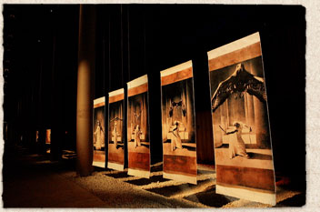 先日行ってきた六本木ヒルズの森美術館で開催されていたグレゴリー・コルベールのプレ展覧会、その本展である「ashes and snow」を観にお台場のノマディック美術館へ。この美術館、日本人建築家の坂茂がグレゴリー・コルベールの「ashes and snow」のために設計した移動美術館なのだ。ニューヨーク、サンタモニカに続いて三番目の開催地が東京・お台場となったわけ。 コンテナーをたくさん積み上げた倉庫のような建物。館内は暗く、コルベールの写真のようなデッサン画のような独特な作品に淡い光が当たっている。 この動物の表情、動物の動き、いったいどうやって撮影したのか分からない。CGじゃないことは確かだ。(笑) 最も素晴らしかったのは、鯨と人間のシクロナイズド・スイミングだ。こういう映像をアイマックス・シアターで観たらものすごい迫力だろうな。 プレ展示を観ていると内容の想像がつくので、プレを観ていない人の方が楽しめるかも。 |