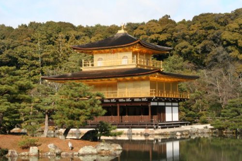 久しぶりに鹿苑寺へ行ってみた。多分、15、6年ぶりかなあ。周知の通り、金閣は昭和の建築。そう思うとあまり足が向かないのだが、やはりこの建物は美しい。三層のうち金箔を貼っているのは上部二層で、一階との対比がまた絶妙だ。 焼け落ちる前の金閣は、白黒写真でしか見たことがないので、昔の姿と比べることができないけど、鏡池に映る姿と金閣の完全なる配置は、室町時代から変わらぬ日本的美の象徴だろう。 この建物に火を放ち、焼け落ちる姿を見つめる・・・。なんとなく理解できてしまう衝動だ。 このフォルムには、やはりそそられる。屋根の上の鳳凰も美しい。 いろんな角度から眺めることができる。 池に映った金閣と鷺。 秋の忘れもの・・・・。 12月にしては暖かいなあ・・・。 |