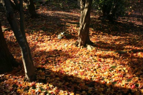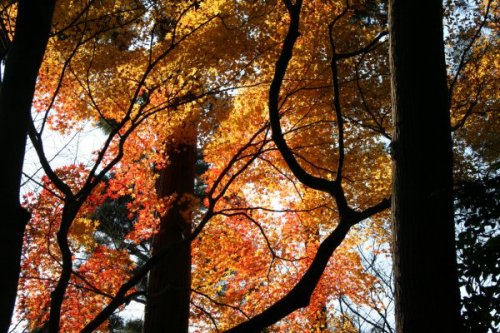 風が吹くと色づいた枯れ葉がハラハラと舞い散る。