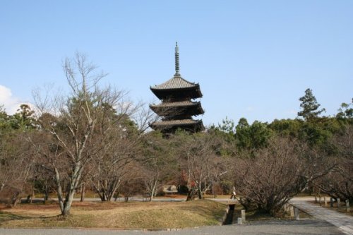 京都の天気予報は、曇り時々雨だったけど、昼過ぎには青空が広がった。どこに行こうか何も決めてなく、とりあえず久しぶりに京福電車の一日券を買った。市電らしさが残る今や京都で唯一の電車だ。 四条大宮から帷子ノ辻で乗り換えて、御室へ。駅に降りたら、仁和寺の大きな山門までは直ぐだ。この門が象徴しているように、この寺には贅沢な空間が広がっている。 有名な御室桜の木々。桜だけに紅葉の名残もまたいとおかし。 国宝の金堂。桃山時代に建てられた京都御所の紫宸殿を江戸時代初期に移築したもので、現存する最古の紫宸殿の遺構。シンプルだが、金をあしらったデザインは、さすがに御所のもの。宇多天皇など造営には天皇家が関わっており、御室御所と呼ばれるのも納得。 金堂の瓦には、こんな素敵な意匠が・・・。 江戸時代初期に創建された五重塔。御室桜の咲く頃は、桜色の絨毯をしたがえ、美しいのだろうなあ。いつか、御室桜の頃に訪れたいものだ・・・。 |