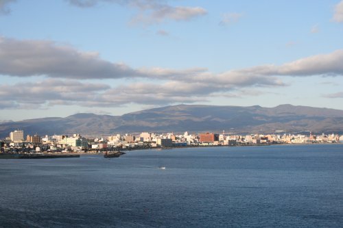 墓地の広がる坂道を登っていくと立待岬に出る。海の向こうは、青森県だ。海の青さも綺麗だが、太陽の光の影が何とも美しい。