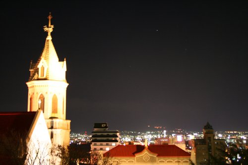 函館山で夜景を見て、ロープウェイを降りたら、そこには不思議な夜が広がっている。とてもここが日本とは思えぬ異国情緒溢れる街角がある。特に、日本的な 街並みが夜の闇に隠され、異なる教会建築がライトアップされる時、まるで異次元空間に迷い込んだよう。歩く人もまばらで、ちょっと怖いけど、幻想的だ。