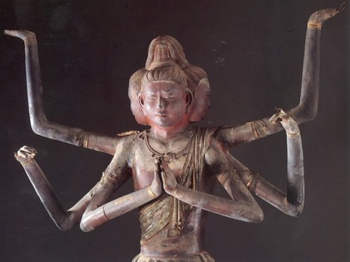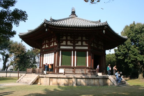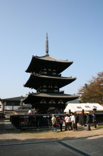 正倉院展と並んで今回の旅のもう一つのメインイベント「興福寺 国宝特別公開2006」だ。中金堂や北円堂など4年や5年ぶりの内部公開となる。 も ともと興福寺には、東西の金堂の間に中金堂があった。金堂は、まさにお寺の中心。それが江戸時代の享保二年(1717)に焼失、その裏手に建てられた仮金 堂が現在の金堂になっている。この仮金堂は、文政二年(1819)の建造。中金堂より若干小規模で、仮というだけあって内部もそっけない。 本尊は、釈迦如来。江戸時代のもので5代目の本尊となる。 現在、中金堂を再建すべく基礎工事の真っ最中だ。 国宝館は、普段も公開されており、有名な写真の阿修羅像は、いつでも観られる。 今回の目玉は、「板彫十二神将展」の一挙展示。縦約1m、横約40cm、厚さ約3cmの檜板12枚に掘り込まれた平面の像で、小さな枠に魔法で押し込まれたようななんとも不思議な作品群だ。言葉で表現できない浮き出し感(立体感)が躍動的で素晴らしい。 等身大の法相六祖坐像も圧倒的迫力だった。まるでこれから動き出すかのよう・・・。 今回、個人的なクライマックスは、ここ北円堂。弥勒如来坐像は、運慶の作。代表作とも言われる傑作だ。 そ、そ、そして、ここには、やはり 運慶作の無著菩薩像がある。この像は、単体で過去の興福寺展で東京にも展示されたことがあったけど、やはりあるべき場所に立っているのを観られるのは至福 の喜びだ。角度によって様々な表情を見せるこの全てを達観したような眼差し、紛れもなく日本彫刻の傑作中の傑作の一つだ。 ここは、初層を覗き込む形で公開されていた。ここも中を見るのは、初めてだ。美しい三重の塔だが、内部には弁財天が安置されていた。とても可愛い小さな弁天様だった。 内部は、かなりはげていたが、千の如来が小さく描かれていた。天井も美しい模様だが、かなり色褪せていた。明治に復元された部分が緑と赤で美しい彩色だった。 こちらは、お馴染み猿沢の池からの興福寺五重塔。 京都は、だいぶ景観が乱れてきたが、奈良はいつきても1000年前と変わらない。(・・・と思う) いつまでも、この美しい姿で旅人を迎えてほしい。1000年を超えるシルエット、奈良には今でもそれがあるのだ。 |