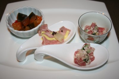 オーナーシェフの女主人が出てきて、席へ案内してくれた。 僕「メニュー見せていただけますか?」 主「今日は、トマトのパスタです」 日替わりメニューがそうなのかと思い、 僕「あ、それもいただきますが、お腹空いているので、他のメニューも見たいのですが。」 主「今日は、トマトのパスタを食べなさい。それで美味しかったら、また来て、その時は違うものを食べたらいいじゃない。」 僕「ええと、今日はパスタだけ?」 主「今日は、トマトのパスタを作りたいのよ。私の店では、私の作りたいものを作って食べてもらうの。私と感性が会わない人は、来なくていいのよ。」 それで、トマトのパスタを頼んだというか、強制的にそのメニューになった。されど、待てども待てども料理が出てこない。ずいぶん、待ったよなあ。 それでやっと出てきたのがこれ。 予想したものとは、ずいぶん違った。トマトソースベースのパスタなんだけど、いろんなものがのっている。水菜、モッツァレラ・チーズ、大根、シメジ、蚕豆、パプリカなど。どれも手の込んだ味付けがされていた。 主「まずは、混ぜずに上にのっている食材を味わって」 と、それぞれの食材の産地とどうしてそれを使っているかを説明してくれた。 まあ、とにかくこの女主人が喋る、喋る、喋る。 それでまた、他のテーブルの客のところに行っては、 「あなたの家の玄関マット、あれ良くないわー。これに変えるべきよ」と力説している。(ほとんど喧嘩腰) なんでも、本業はインテリア・デザインとブティック経営らしい。レストランの隣は、ブティックだ。 レストランのテーブルや壁には、メニューはなく、インテリア・コーディネートの宣伝ばかりだ。 まあ、料理は美味しかったので、素直に美味しいと言ったら、洋梨のリキュールやデザートのパイをサービスしてくれた。 値段も高くなく、酒の種類も豊富な店だった。でもサービス料を取っていた。女主人のお喋りがサービスなのかしら。 夜もお任せ料理のみだそう。お客の食べたいものは聞いてくれないらしい。 なんか笑っちゃった。 湯島天神のすぐ近く Bar Due という店。 |