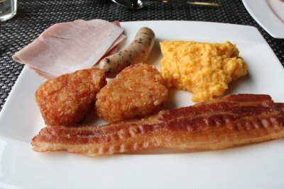 広さは、以前のクラブ・ラウンジの3倍になったとか。確かにずいぶんと広くなった。ただ、その分、クラブ・フロアの客室数自体も増えたので、時間帯によってはかなり混雑。 マッサージ・チェアーや大画面のテレビなどあり。常時、軽食の用意とあったが、それはかなりしょぼい。 ラウンジからの眺め。今までは、富士山側しか見えなかったかったが、国会議事堂や皇居側の眺めも楽しめるようになった。 カクテル・タイムは、ワインやシャンパン、ケーキやスナックがあっていい。これが通常メニューであるともっといいけど。 朝食は、洋食しかなかった。そこそこの種類という感じ。 ホテルのクラブ・ラウンジって、東京より大阪の方が安い料金で充実しているなあ。 |