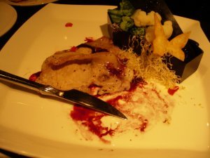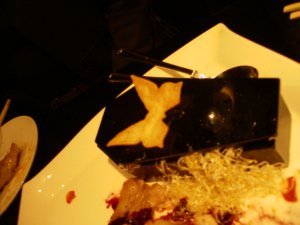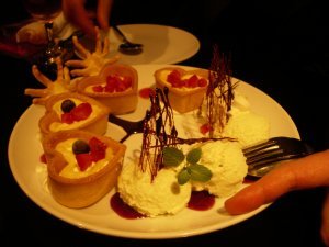吸血鬼をテーマにしたカフェ・レストラン。とにかく赤と黒。 とにかく赤と黒。ホーンテッド・マンション風。席の後ろの棚の上に烏の置物があったり、鏡はひび割れだったり、店員のお姉さんもこれまたホーンテッド・マンション風のコスチューム。ちょっとメイド・カフェみたい。(行ったことないけど)でも、ここ銀座。 雰囲気に合わせて、キールを頼む。 料理は、「吸血鬼と王女の契りコース」。最初の料理が、「幽閉された扉を開けたら、小エビとアボカドのタルタル シェリー酒の香り チーズガレットに乗せて」だと。味は普通。お姉さんが、この台詞を全部言うのだけど、一回で聞き取れないので、何度も言わせていたら、嫌な顔をしているようだった。というか、店員絶対笑わない、無表情で接客するのがこのレストランの決まりなのか。 で、何故か誰かの指が・・・。 次の料理は、「おぞましい戦慄の奏で 鴨ローススモークとルッコラの香味野菜のサラダ」。料理名におぞましいって・・・。 そして、また誰かの指が・・・。 次は、「生気無き吸血鬼たちの舞踏会へ カマンベールチーズと彩り野菜のフリット オーロラソース」。で、やっぱり誰かの指が・・・。 次は、「変貌した紫色の花に囲まれて パンチェッタとキノコ 3種豆のトマトクリームスパゲティ」。まあ、これは綺麗な名前だな。でも、また指が・・・。 次は、「赤眼のコウモリと黒猫の暗黒ダンス カラスカレイと有頭海老の香草パン粉焼き アメリケーヌとマスタードで」。しかし、だんだん前置き聞くのが面倒になってきたな。また、指。 次は、「罪無き王女の生き血を啜り 黒豚ロースのグリル カシス風味のポートワインソース」だと。どう見ても、生姜焼きじゃねえの。 また、指だし。 あ、でもちょっと血っぽい。 ガルニの入れ物が棺だった。 デザートは、「永遠の破門を受ける 毒グモ仕立ての青リンゴムース ミックスベリーソース」。毒グモ仕立てって、食欲そそらないなあ。 結局、最後まで誰かの指が・・・。 どうせやるなら、もっとおどろおどろしくてもいいのになあ。 ちなみに、姉妹店に迷宮の国のアリスと、プリンセスなレストランがあるらしい。銀座らしくない店だなあ。 |