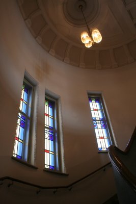 現在は、無料の札幌市資料館になっている。 大通公園の歴史の展示が面白い。最初は、北の官庁街と南の庶民の町を切り分けるための通りだったらしい。時代毎にその姿を変えていく大通公園の変遷に歴史を感じる。 雪祭の過去の写真の展示もあった。最初は、市内の中高生の手作り作品が並ぶお祭だったのねえ。正直、見るも無残な雪像だった。 最大の見所は、おおば比呂司記念室。わかさいもやホテイの焼き鳥のデザインをした画家の作品の展示だ。この人、その昔、全日空の時刻表の表紙を長らく手がけていて、その懐かしい日本の姿を描いた作品群に感動しちゃった。優しくて、微笑ましくて、本当に素晴らしい。 建物内部も素晴らしい意匠で見所いっぱい。 |