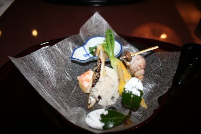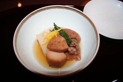 夜は、和食へ。懐石、天婦羅、鉄板焼きは、最高の食文化だなあ。日本人で良かった。 先付 茶振りなまこ 分葱辛子酢味噌和え 霰独活 公魚田楽焼 姫慈姑 青身大根唐墨まぶし 梅貝時雨煮 雪輪蓮根 海老黄身寿司 石垣零余子 吸物 鶉真丈焼目 丸大根 金時人参 露生姜 白髪葱 造里 鮮魚盛り合わせ 雲丹、烏賊、鮪、鯛 あしらい 焚合せ 小海老芋揚げ煮 蕪 車麩 牛肉 菊菜 銀餡 刻み柚子 焼身 鰤の霙煮 いくら醤油漬け 銀餡かけ 針海苔 鰤の美味しさには、やられた。焼魚に銀餡がこんなにあうのかと、ちょっと感動的な美味しさ。