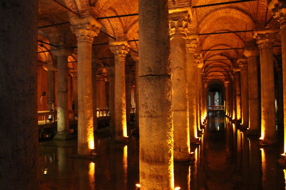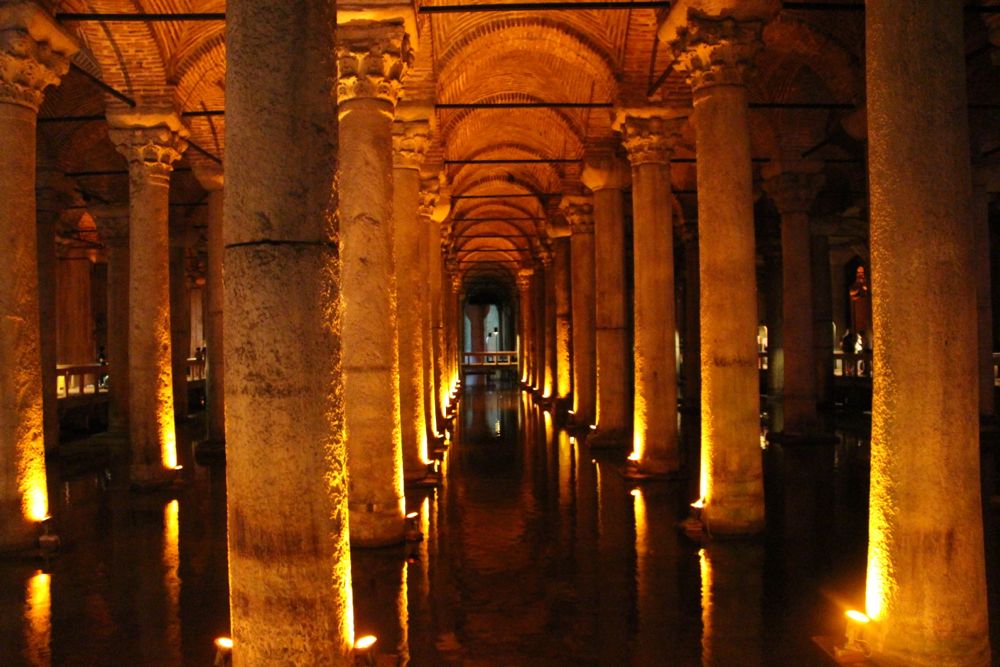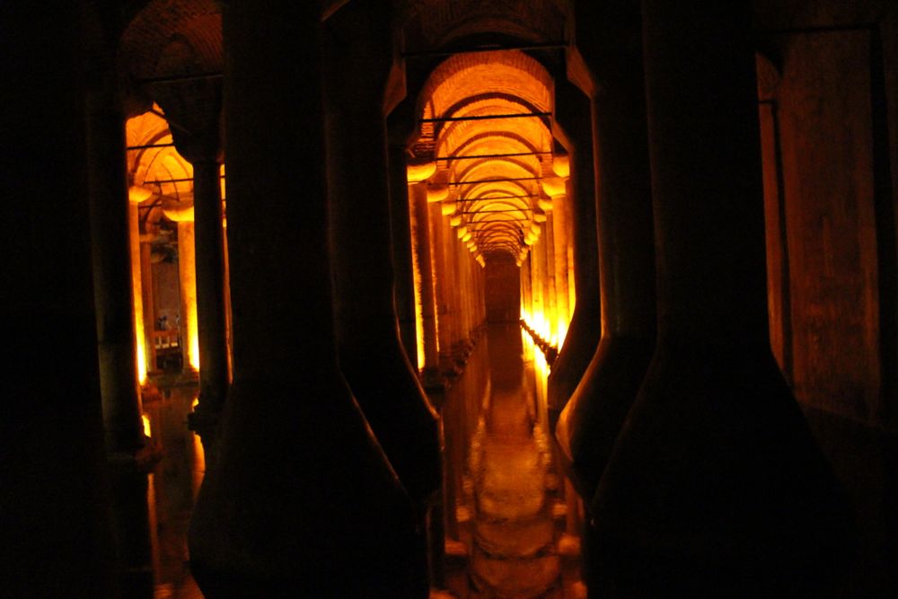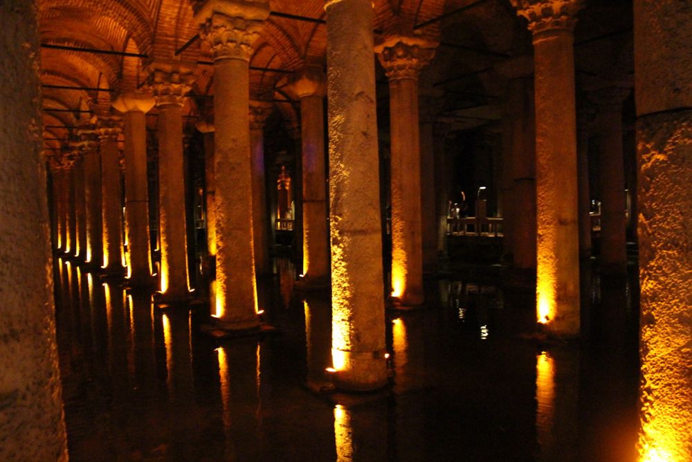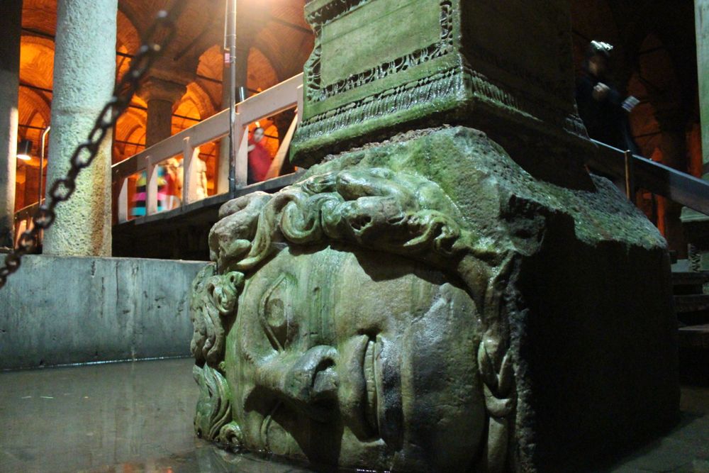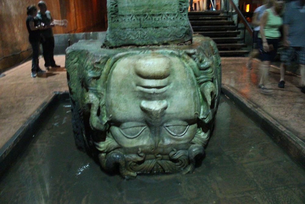 ここもイスタンブールに行ったら入ってみたいと思っていたところ。宮殿と呼ばれているが、ビザンチン帝国時代から続く地下貯水池。しかし、宮殿とはよく名付けたなあ、確かに柱が宮殿っぽい。これが地下にあるんだから、古代の宮殿が発掘されたと言われたら信じてしまいそう。 入場料は、20トルコリラだった。外貨やクレジットカードが使えないのであらかじめ換金が必要。窓口で、ユーロしかないと言ったら、近くの両替屋を教えてくれた。 外は、ものすごい暑さで、それをしのぐにもちょうど良いと思ったけど、湿気がものすごく自分自身に一気にカビが生えるとさえ思えた。天井からは水の雫が滴り落ち、観光客用の歩道も濡れていて滑りやすい。 柱を怪しく照らすライトが、幻想的な雰囲気を醸し出し、宮殿らしらを演出する。池には魚も泳いでいる。 宮殿奥の2本の柱を支える土台には、メデューサの頭部の彫刻が、一つは逆さま、もう一つは横向きに置かれている。見つめられると人間は石になってしまうという伝説の恐ろしい力を封じ込めるという願いだったのか。なんか江戸の職人のような粋なユーモアを感じた。 繰り返されるシンメトリーの美しさに、人は何故惹かれるのだろう。 地下宮殿内にカフェがある。来る前は、カフェでこの幻想的な景色を見ながらお茶したいと思っていたけど、あまりの湿気に退散。ここで出される食べ物、大丈夫かなあ? |