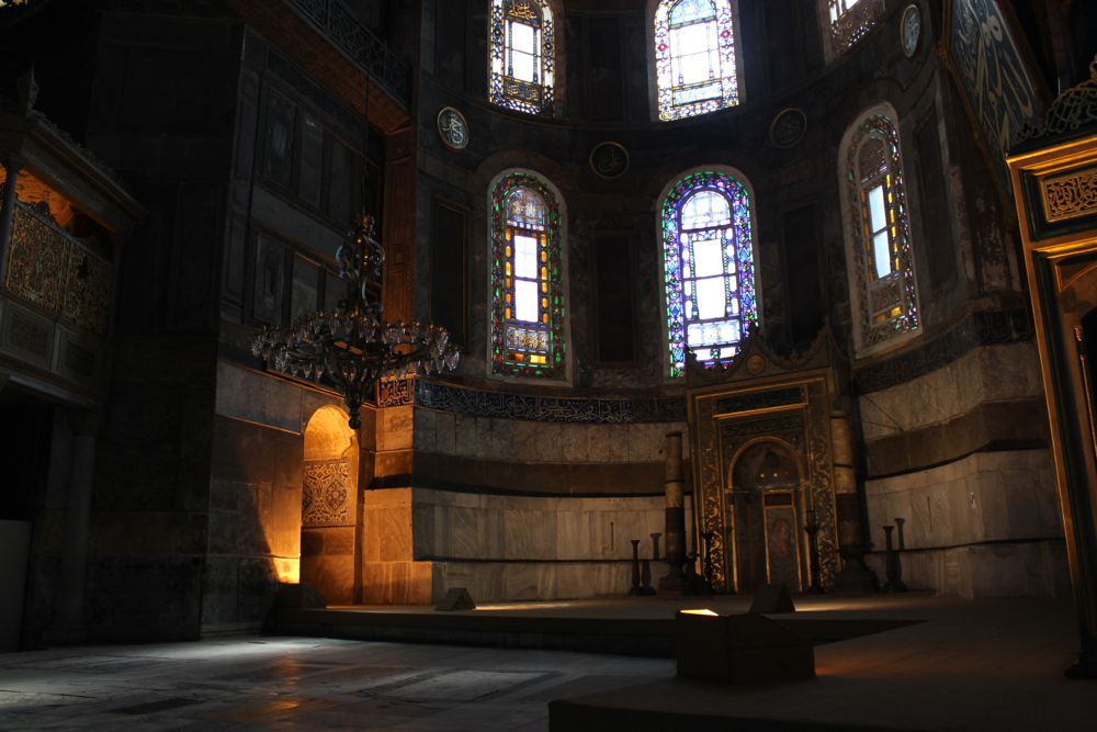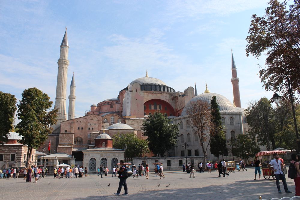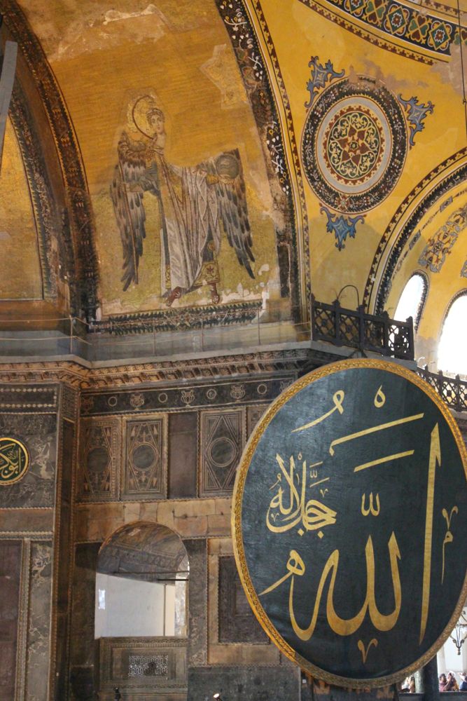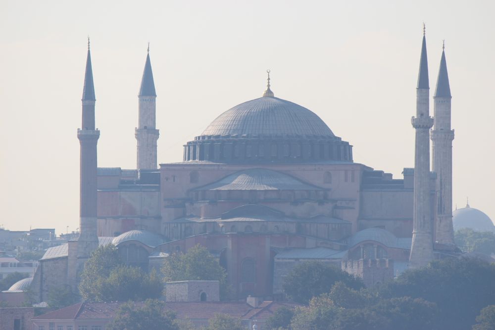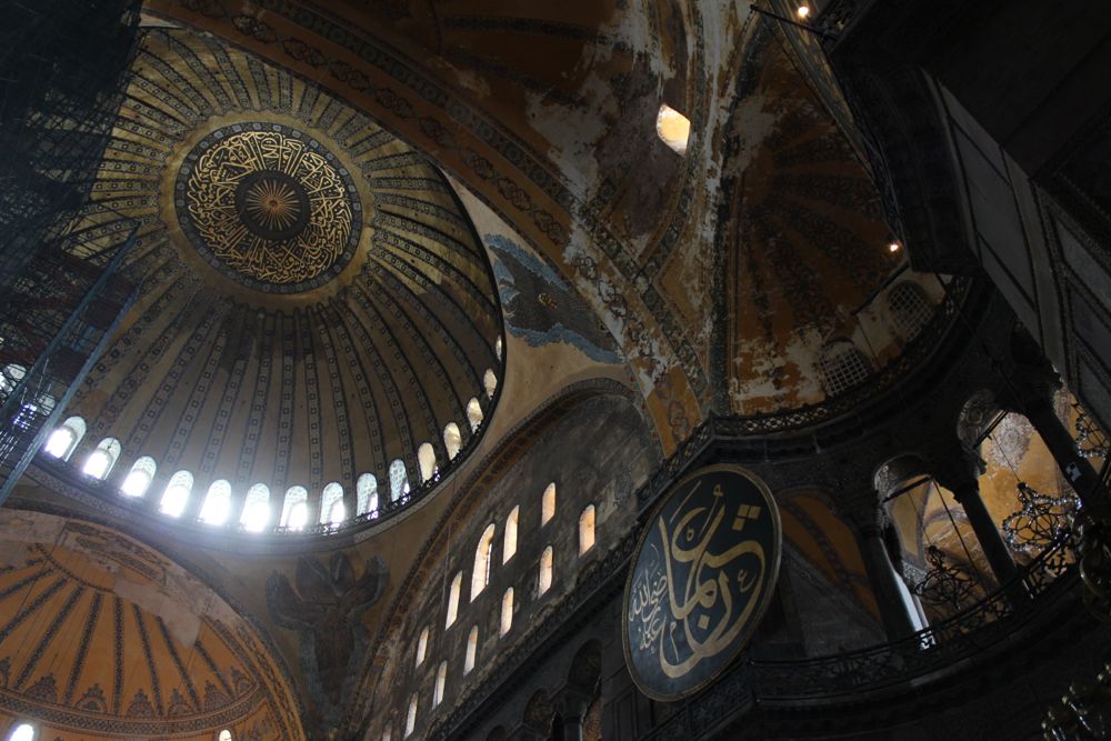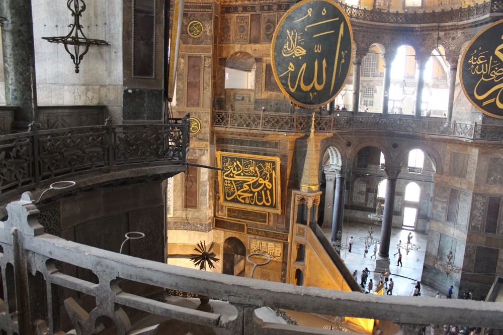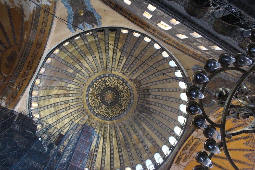 アヤソフィア、ギリシャ語でハギアソフィア。その歴史は、360年まで遡れる。当時は、まだ東ローマ帝国の首都コンスタンティノープルだった。コンスタンティノープル、ああなんという響き。歴史好きにたまらないね。 火災による焼失、反乱による倒壊を経て、現在の建物は537年のものだ。1400年以上経っているんだねえ。ブルーモスクと呼ばれるスルタンアフメト・モスクの青に対して、こちらは朱色がかっている。もともとはキリスト教寺院として建てられたが、1543年にオスマントルコの時代に壊されずにイスラム教寺院に改修された。その際に建てられたのが尖塔であるミナレット。不思議と、最初から設計されていたかのように違和感がない。まあ、現代人はこの姿しか見たことがないわけだが。 現在は、博物館になっている。こちらも大行列。すると日本語ペラペラのトルコ人がやってくる。今は大行列で午後には空くからそれまでうちの店で涼もうと言う。親日的トルコだから、あまり邪険にしたくないけれど、絨毯屋だった。日本で買うと90万円の絨毯が、今ここで買うと20万円。せっかくトルコに来たのだからと、記念に何か買って行くべきと、ものすごくしつこい。iPhoneで日本に行った時の写真を見せる。そこには、日本の家族と写ったもの、日本の有名人と写った写真がたくさん。それを見せれば信用すると思ったのかな。本当に親切で90万円の絨毯を20万円で買えることを知らせたかったのかもしれない。でもねえ、観光旅行で来ているんであって、いきなり何十万円もする絨毯なんていらないよねえ。そんなお金持っていないと言っても、クレジットカードも使えるから大丈夫とか、ものすごく商売熱心。買う人がいるから熱心なんだろうねえ。観光で何十万もする絨毯はいらないよねえ。 で、アヤソフィアの行列に並ぶ。ふと横の看板を目にすると「Avoide the queue, use KIOSK」とある。列の側に入場券の自動販売機があった。そこには、2、3人しか並んでいない。対面販売の窓口は、何百人って並んでいる。とっても不思議だったけど、自動販売機に行ってチケットを買う。なんと、自販機の前にも係員が居て操作の説明をしてくれた。 クレジットカードも使えて便利。あっと言う間にチケットが購入でき、大行列の人たちを不思議そうに眺めながら館内へ。 内部は修復中だったけど、何百年と時を経ても色あせない意匠の素晴らしさに圧倒された。 いろんな色の石、マーブルな石と円形を配したデザインも秀逸。 塗られた漆喰の下から出てきたキリスト教の絵画。 ステンドグラスも美しい。 いかにも中世っぽい回廊。この右横にある入り口に階段があり2階に上がることができる。 2階も天井が高くそして広い。ここは博物館らしい展示がある。 キリスト教的世界とイスラム教的世界が共存している、とても不思議な空間だ。 2階からの眺め。人々が小さく見える。かなり高いんだね。 出口付近にあるモザイク画。出口の背面にあるため、気づかずに出て行ってしまう人が多いため、出口上に鏡が取り付けられており、それを見て後ろを振り返れるようになっている。 |