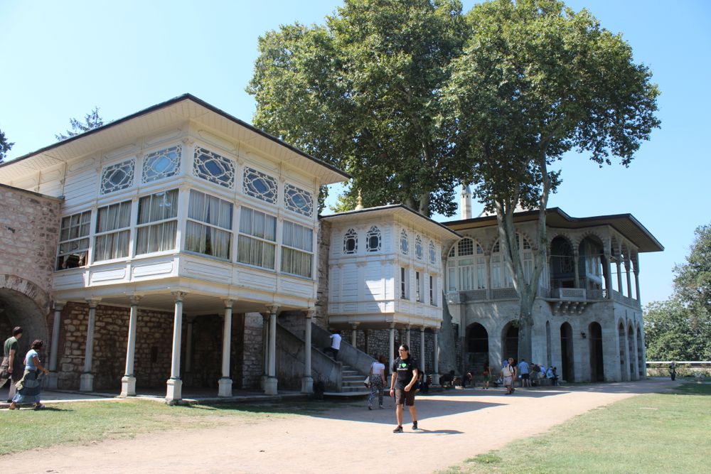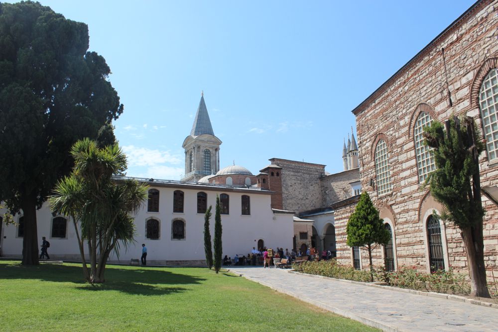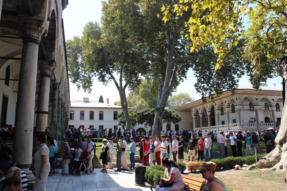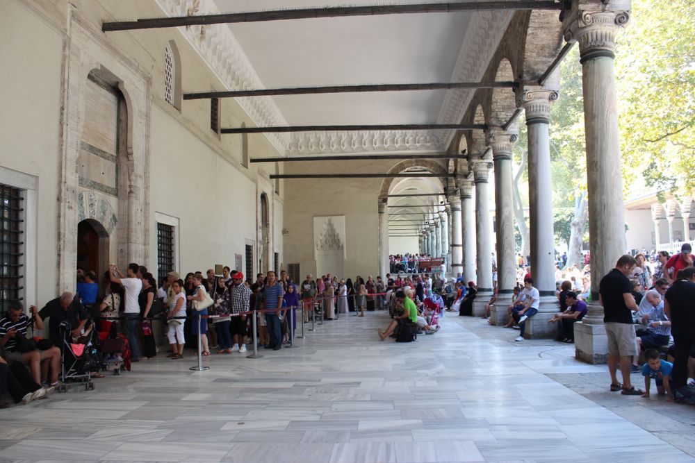 イスタンブール旧市街は、ブルーモスク、アヤソフィア、地下宮殿、トプカプ宮殿と、全てが徒歩圏内にあるので効率的に観光できる。しかし、どこもチケットを買うのに大行列。アヤソフィア前で、ペットボトルの水を買った際に、お店の人に日本人かと聞かれ、そうだと答えると、日本人は兄弟だから、いいことを教えてあげようと言う。トプカプ宮殿は、チケットを買うまでに大行列だから、特別にチケットを売ってあげるとのこと。いくら?と聞くと35リラと答える、窓口で買ったらいくらと聞くと、30リラだと言う。その5リラは何と聞くと、手数料だって。それで並ばなくていいから安いでしょ、と言う。うーん、これも親切なんだよね、でもねえ、なんか怪しかったので振り切った。 トプカプ宮殿に着くと、なんと恐ろしいほどの大行列。これは、チケットを買うまでに1時間くらいかかるかしら、先ほどのトルコ人からやっぱり買っておけば良かったかなあと渋々列に並ぶ。並んでしばらくして、見つけたよ「Avoide the queue」の看板。早速、列を抜け出して自動販売機の列へ。案の定、10人くらいしか並んでいない。何故、何故なの?何故、みんな対面販売窓口にしか並ばないの。こちらで数分でチケットを購入、簡単に宮殿の中へ。 現在、宮殿は博物館になっている。屋外はものすごい気温。立っているだけで滴り落ちる汗、博物館はさぞかし冷房完備で快適だろうと期待していたが、屋根はあるものの扉は開けっ放しで、屋外とほぼ同じ気温。暑い、暑い。 有名な短剣など宝物が展示している館は、大行列。これは、もうさすがに諦めた。時間の余裕がないと無理だね。やはり、イスタンブールは宿泊してゆっくり見たいねえ。 トプカプ宮殿内にあるカフェ・レストラン。新市街や海峡の眺めが良い。 屋外も屋内も信じられないくらい暑いので、もうめげてしまって別料金のハマムもパスして宮殿を後にする。ここは、再び訪れた際にまた来よう。 薔薇が綺麗だった。 |