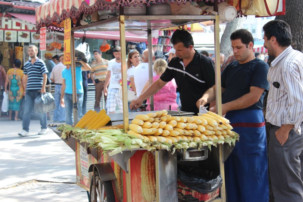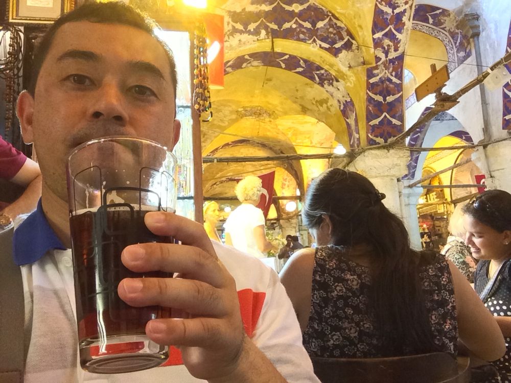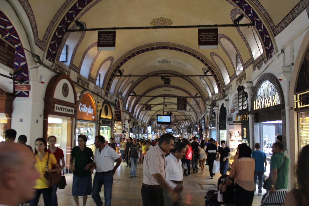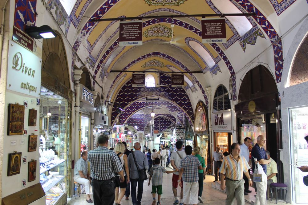 トプカプ宮殿の最寄りの駅からトラムに乗ってグランドバザールへ。 グランドバザールは1461年に完成し、4500もの店舗、2000以上の工房、65の通りを持つ巨大屋内市場だ。チュニジアのチュニスのメディナのバザールに行った時は、次々に現れる客引きに辟易してゆっくり買い物ができなかったので、同じことにならないか恐れていた。でも、ここは大丈夫だったねえ。店の前で商品を見ていると話しかけられるけど、歩いているだけで客引きにあったり、勝手に商品を首からかけられたりのようなことは無かった。迷路のようなバザールの中を散歩するのはとっても楽しかった。高級品は、それなりの値段がするけど、ちょっとした小物やお土産品はとっても安かったよー。日本人だと言うと、どこのお店も安くしてくれる。そして、何故か、お店の人がみな日本語がぺらぺら、これには驚いた。ある店でトルコ石とシルバーのブレスレットを勧められ、いらないと言ったら、「あなたはケチですね、この埼玉ぁ〜」って言われて驚いた。 焼きトウモロコシを売る屋台を結構見かけた。札幌の大通公園みたい。 同じような店は、通りごとに固まっているので値段や商品の比較がしやすい。屋内だから暑くないし、またいろんな物が売っているので散策していて本当に楽しい。 歩き疲れたので、バザール内のカフェでアイスティー。船の出航の時間が近かったのであまりゆっくりできなかった。ここもまた改めてゆっくり訪れたいなあ。 再びトラムに乗って港へ戻る。イスタンブール、一日滞在の弾丸だったけど、とりあえず有名どこを網羅でき楽しめたな。 |