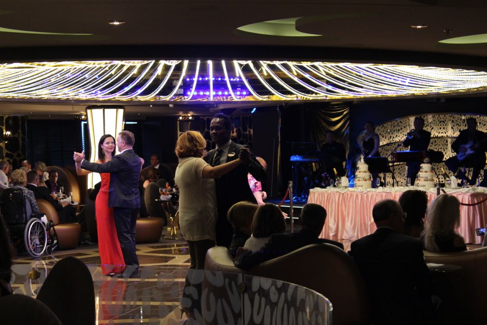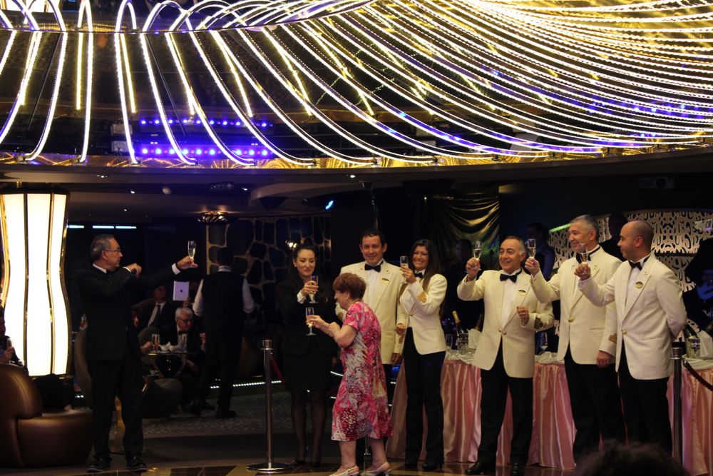 キャビンに船長名で招待状が届いていた。船長主催の特別なパーティーへの招待状だ。このパーティーは、MSCクルーズに二度以上乗っているリピーターと乗船しているハネムーナーが詳細される。昨年乗船した際に、MSCクラブカードに申し込んだ。このクラブに入会すると次回乗船時に招待状が届く。団体ツアーで来ている人は、入会できないので個人客のみが対象だ。クラブに入会すると次回以降船代や船内での買い物やアクティビティーが割引になる。またポイントも獲得でき、シルバー、ゴールド、ブラックとステータスが上がって行くと付帯サービスも増え、割引率も高くなる。 この夜は、フォーマルのガラ・ナイトだったので、着物で出かける。周りに日本人も数人いたが、やはり着物は僕だけだ。昨年は、女性の着物姿を数人見かけたが、今回はいなかったねえ。 船長が搭乗し、全員で乾杯!手前のピンクのドレスのおばあちゃんがずっと一人で踊ってるの。 その後は、ダンスパーティーや船長と一緒の写真撮影タイム。しかし、カメラマンはクルーズのクルーなので写真は買わないとならないの。 いつの間にかたくさんの人でダンスホールがあふれる。外国人ってこういうのが似合っていいなあ。 シャンパンやフィンガーフードをいただきながらまったりしてから、ディナー会場に向かう。 |
