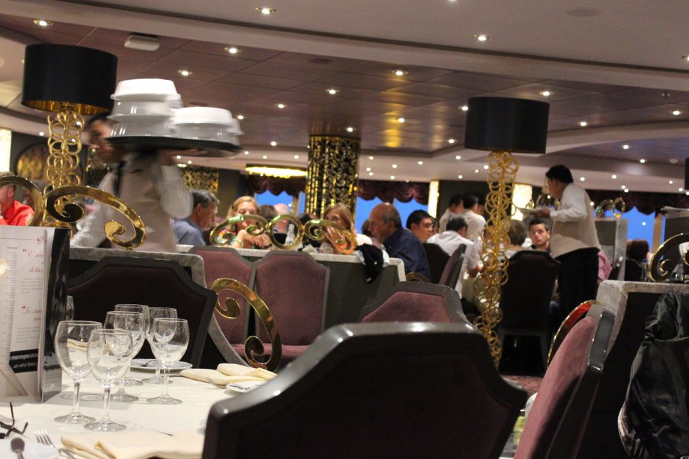 大型客船のディナーは、二部制。一部は19時から、二部は21時から。船を予約する際にどちらか決める。様々な国の人が乗船しているため、言語毎にテーブルがアサインされる。団体ツアーの人たちは同じテーブルだが、個人旅行している日本人だけのテーブルに案内された。同じ言語じゃないと食事の際に気を使うだろうというのが、クルーズ会社の気配りなんだろうな。確かに英語ならまだしも、フランス語だけのテーブルになっても困るしね。 ディナーの時間以降は、ドレスコードがある。厳密ではなく、皆で楽しみましょう的な程度で、正装の日でも軽装で現れる外国人は多い。日本人は、そういうのちゃんと守るよね。初日は、カジュアルだった。カジュアルでも短パン、TシャツはNG。 サーブしてくれたのは、ホンジュラス出身の人だった。スタッフの国籍も様々。 ディナーは、コースになっいて、前菜、サラダ、パスタ、メインと好きなものを選ぶ。それぞれ毎回3種類くらいから選べる。量も多いのでスキップしてもいい。 ヨーロッパに来ると、何故かムール貝が食べたくなるよね。日本じゃ、めったに食べないけど。 トマトにモッツァレラ。グリーンの葉っぱで、イタリアの国旗の色に。 本日のスープ カルボナーラ メインの鯛のソテーなんだけど。盛りつけをもう少し工夫してほしいよねえ。メインなんだから。 デザートは、ラズベリーのシャーベットを選んだ。 ディナーの後は、シアターでショーを観る。今宵は、オペラの名曲のトリビュート。 |