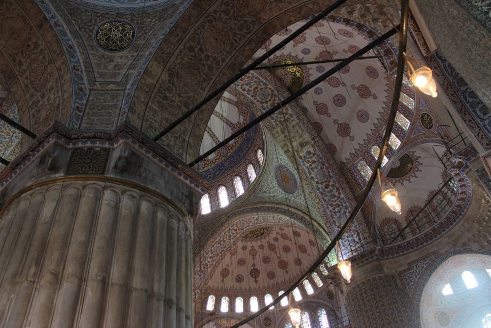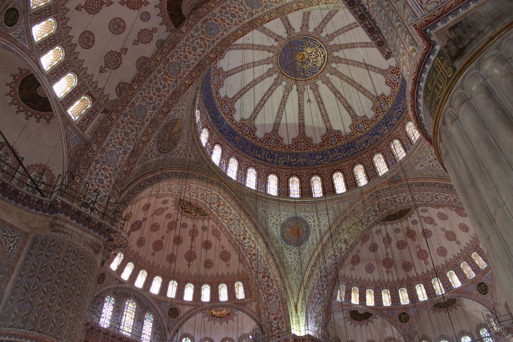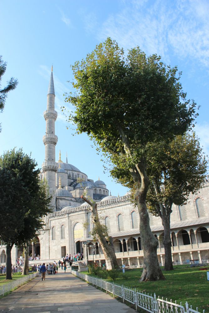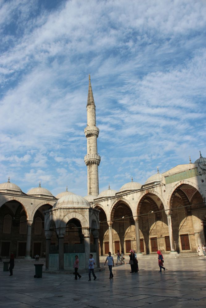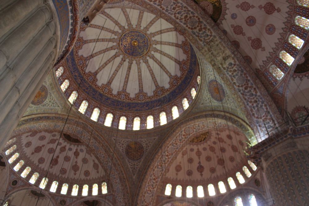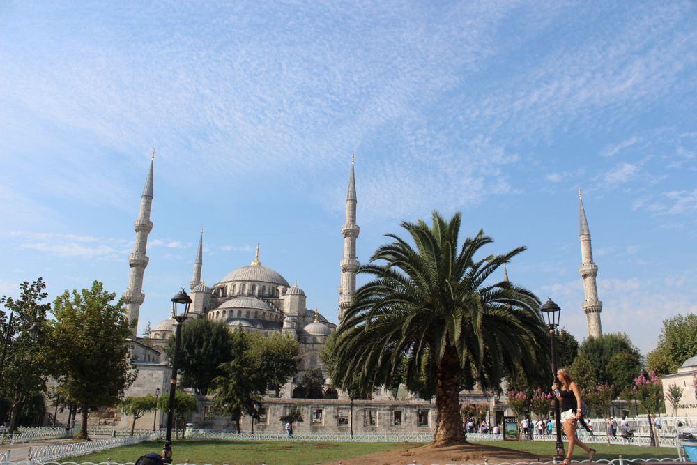 トラムで旧市街の中心スルタンアフメトまで。そこで降りるとすぐ目の前が公園。なんとここにもエジプトのオベリスクがあった。歩いていると、「日本人か?日本人大好きだ。モスクの入り口はあっちだよ」とトルコのおじさんが教えてくれる。 尖塔であるミナレットがでーん。スルタンアフメト・モスクが目の前だ。入り口を抜けるとそこには大行列。さすが世界的な観光地は、午前中からものすご人だ。クルーズ船がたくさん着いたのだろうか、クルーズ船のツアーらしき団体がたくさんいた。 通常モスクの尖塔ミナレットは、1〜4本だそうだが、このスルタンアフメト・モスクは6本建っている。(5本しか見えていないけど・・・)これは、世界で唯一なんだとか。 モスクは、宗教施設なので入るにはいろいろと決まりがある。特に服そうは重要だ。女性が頭を隠すショールは入り口で貸してくれる。男性も短パンで来てしまった場合は、腰に巻く布を借りる。 朝は曇っていたけど、だんだんと青空が見えてきた。モスクは、光を浴びてその美しさがいっそう引き立つ。 中庭。信者の入り口はここにある。観光客用の入り口は、この外側に延々と長い行列ができていた。 手足を清める場。石けんと水道が設置されていた。 行列に並んでいる際に、ニュージーランドから観光で来ていた女性に話かけられる。日本の学生をホームステイで受け入れたこともあり、日本が大好きだとのこと。並んでいる間、ずっとお喋りをしていたので、待っている間も楽しかった。外国の人とお話するのは楽しいね。 ようやく中へ。ドーム型の天井の模様が美しい。窓からさす陽の光がまた幻想的だ。内壁を覆うのは、イズニックタイルと呼ばれるもので2万枚以上も使われているそうだ。 絨毯も素晴らしい意匠。 手前が観光客が入場を許されているエリア。柵の向こう側がお祈りの場だ。内部が見学できるのは、お祈りの時間以外。 とにかく天井が美しいので、ずっとずっと見上げていた。 モスクを出るとその正面にアヤソフィアが・・・。 振り返るとスルタンアフメト・モスク。やはりこの姿には圧倒された。美しいし、そして古いのだけど、どこか新しい見たことのない斬新なデザインだ。そして周りに近代建築がなく、空が広がっているので、その美しさも際立つ。 なんかとっても不思議。心奪われる建築だなあ。 |