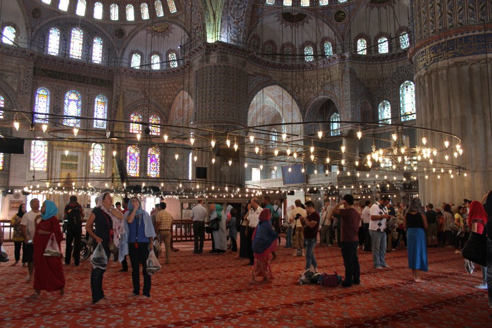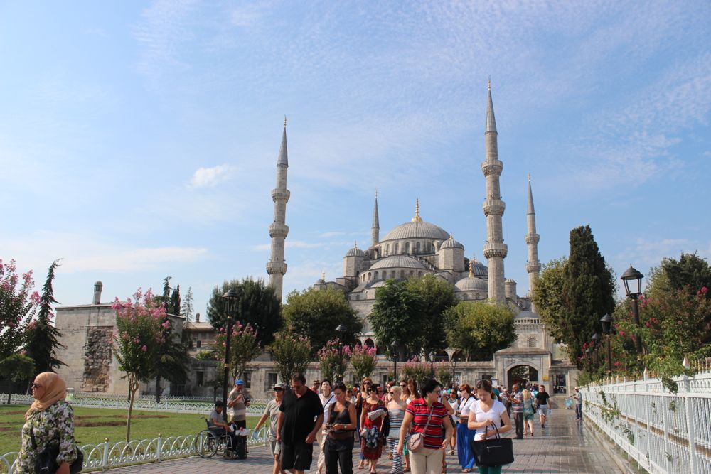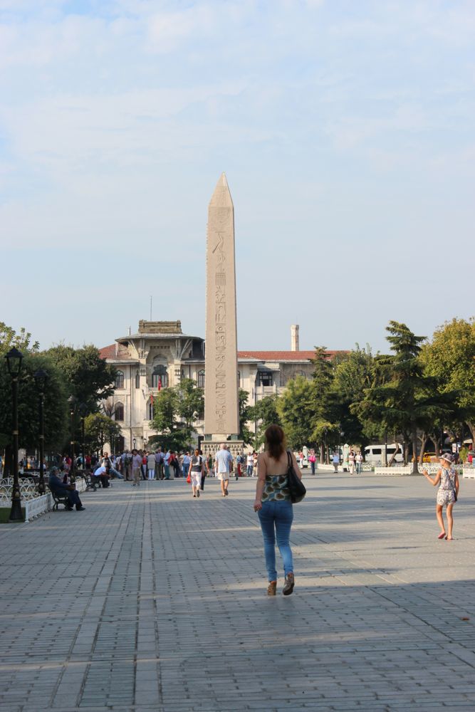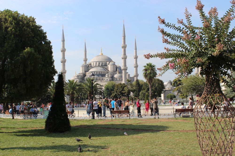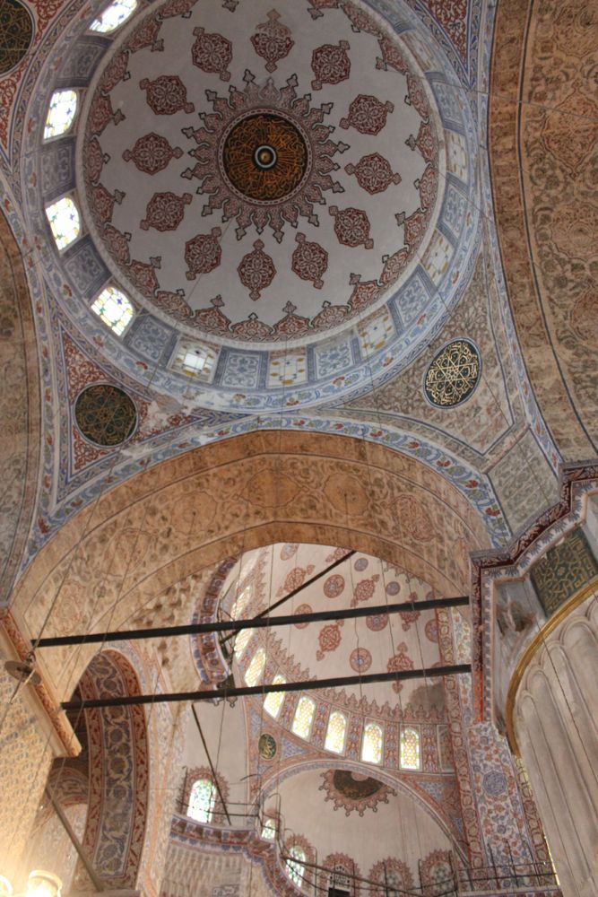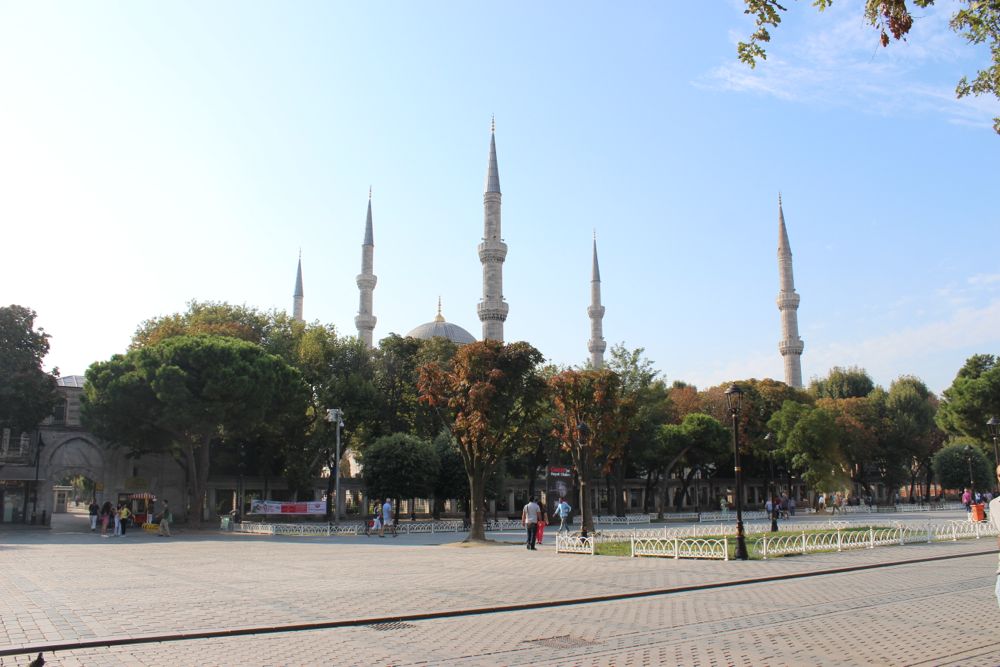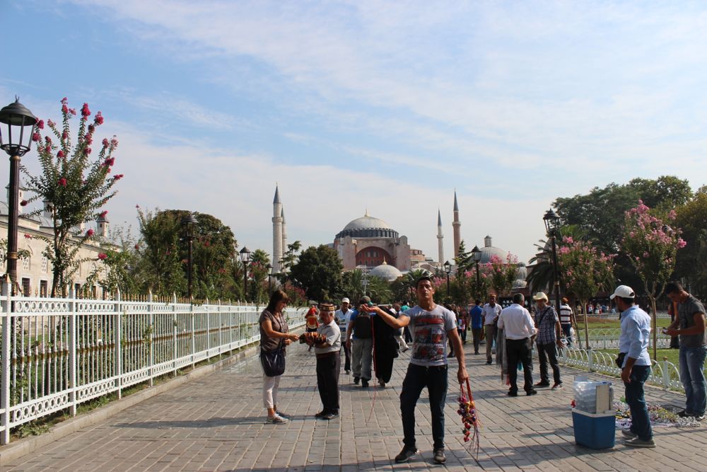 トラムで旧市街の中心スルタンアフメトまで。そこで降りるとすぐ目の前が公園。なんとここにもエジプトのオベリスクがあった。歩いていると、「日本人か?日本人大好きだ。モスクの入り口はあっちだよ」とトルコのおじさんが教えてくれる。 尖塔であるミナレットがでーん。スルタンアフメト・モスクが目の前だ。入り口を抜けるとそこには大行列。さすが世界的な観光地は、午前中からものすご人だ。クルーズ船がたくさん着いたのだろうか、クルーズ船のツアーらしき団体がたくさんいた。 通常モスクの尖塔ミナレットは、1〜4本だそうだが、このスルタンアフメト・モスクは6本建っている。(5本しか見えていないけど・・・)これは、世界で唯一なんだとか。 モスクは、宗教施設なので入るにはいろいろと決まりがある。特に服そうは重要だ。女性が頭を隠すショールは入り口で貸してくれる。男性も短パンで来てしまった場合は、腰に巻く布を借りる。 朝は曇っていたけど、だんだんと青空が見えてきた。モスクは、光を浴びてその美しさがいっそう引き立つ。 中庭。信者の入り口はここにある。観光客用の入り口は、この外側に延々と長い行列ができていた。 手足を清める場。石けんと水道が設置されていた。 行列に並んでいる際に、ニュージーランドから観光で来ていた女性に話かけられる。日本の学生をホームステイで受け入れたこともあり、日本が大好きだとのこと。並んでいる間、ずっとお喋りをしていたので、待っている間も楽しかった。外国の人とお話するのは楽しいね。 ようやく中へ。ドーム型の天井の模様が美しい。窓からさす陽の光がまた幻想的だ。内壁を覆うのは、イズニックタイルと呼ばれるもので2万枚以上も使われているそうだ。 絨毯も素晴らしい意匠。 手前が観光客が入場を許されているエリア。柵の向こう側がお祈りの場だ。内部が見学できるのは、お祈りの時間以外。 とにかく天井が美しいので、ずっとずっと見上げていた。 モスクを出るとその正面にアヤソフィアが・・・。 振り返るとスルタンアフメト・モスク。やはりこの姿には圧倒された。美しいし、そして古いのだけど、どこか新しい見たことのない斬新なデザインだ。そして周りに近代建築がなく、空が広がっているので、その美しさも際立つ。 なんかとっても不思議。心奪われる建築だなあ。 |