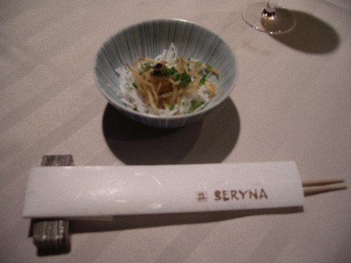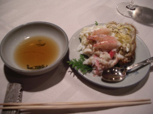 宝生能楽堂で観劇の後、かさん、しのたかさんと六本木の瀬里奈本店へ。かさんにご馳走になりました。いつもすみません。とても美味しかったです。瀬里奈なんて、接待でもないと来ないです・・・。 店内。昭和っぽい雰囲気が好き。ステンドグラス調な照明も洒落ている。 本日のお通し。白魚と長芋。 すくい湯葉。雲丹入り。 毛がに。味噌もたっぷり。美味い。美味すぎ。 かに甲羅揚げ。これがまたソースに付けて食べると絶品。美味すぎ。 しゃぶしゃぶ。にんにくをすって胡麻ダレに、ああ最高。 野菜、餅など・・・。 杏仁豆腐。 抹茶アイスとコーヒー。抹茶アイスの苦味がたまらんね。 ワインは、POUILLY FUISSEとGEVREY CHAMBERTINをいただきました。 かさん、ご馳走さまでした。次回は、僕としの様にご馳走させてくださいませ。 |