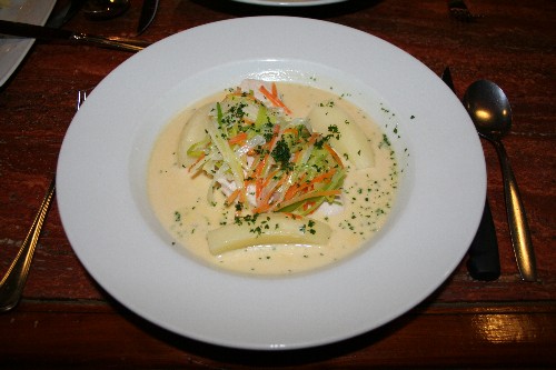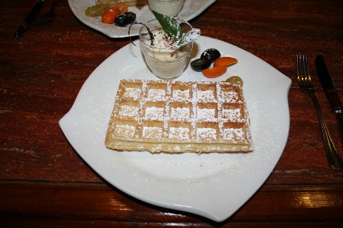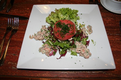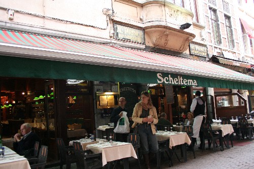 ブリュッセルに戻って、イロ・サクレ地区にあるレストランScheltemaへ。ここは英語のメニューがある。 恒例、まずはビール。日本で言えば、KIRINやSAPPOROのように街を歩けば、JupilerとStella Artoiの看板だらけ。そのStella Artoiを飲む。 各 テーブルには、オリーブの小鉢が置いてある。日本でいうお通しなのか?これをつまみながらビールを飲むのか。しかし、全部食べ終わらなくても、メインの料 理が来る前に強制的にこのオリーブは持っていかれてしまう。何もさげなくてもいいのにと思ったが、そういう決まりなのだろうか? ベルギーの代表的な料理、小エビのコロッケ。クリームコロッケみたいの。レモンとパセリで食べるのがベルギー風。 これもベルギーの代表的な料理、トマト・オ・クルベット。クリームソースをからめた小エビがたくさん。くり貫いたトマトの中にもたっぷり小エビがつまっている。美味しいけど、飽きる。 店の奥にオープン・キッチンが。忙しいそうに料理するシェフたちが見える。 メインは、これもベルギーを代表する料理のワーテルゾーイ。フランドル地方ゲントの冬の料理だが、今は、ベルギー全土でいつでも食べられる。クリーム・シ チューの原型だそうだ。見た目ほどこってりしておらず、味はさっぱり。もともとは魚がメインだったそうだが、今は、チキンが入っていることが多いそうだ。 こちらもチキンとジャガイモと野菜が入っていた。あっさりしていて、とても美味しい。じゃがいもがまた美味い。 デザートのワッフル。まあ、これは普通。 |