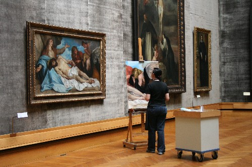 アントワープにも王立美術館がある。堂々とした立派な建物だ。駅や街の中心からはかなり離れている。歩けないこともないが(事実、僕は歩いた)、トラムに乗ることをお勧めする。 エントランス。大きな荷物はクロークへ預ける。大きな美術館だが、ブリュッセルの王立美術館と比べるとやや小ぶり。 ここでもブリューゲルの絵に会える。入館者もそれほど多くなく、ゆっくりと絵を鑑賞できる。 圧巻は、やはり地元ルーベンスの部屋。ものすごく大きな作品が展示室いっぱいに飾られている。四方八方がルーベンス。ルーベンスに囲まれる。そしてこの閑散とした空間がなんとも贅沢だ。 模写している人がいた。 企画展は、「カラヴァッジオに影響を受けた画家たち」だった。なるほど、カラヴァッジオっぽい。 二階が古典部門で一階が近代・現代部門。 これは、現代美術? なのか? 近代部門にもやはり、ベルギーを代表する画家の作品がたくさん。デルヴォー、マグリット、アンソールなど・・・。 デルヴォー アンソールの絵もたくさんあった。 |