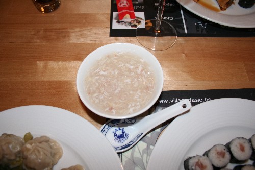 洒落たブラッスリーがたくさんあったのだけど、あまりに愛想のないフランス語圏の連中、フランス語しかないメニュー、フランス語しか話さない店員に、正直嫌気がさし、お昼は、アジアレストランに入ってしまった。 し かし、アジア人なのにやっぱりフランス語をしゃべるのだ。でも、なんともさわやかな笑顔で迎えてくれたので、入ってしまった。他のアジア人の店員は、それ ほど愛想がいいわけではなかったかが、フランス語圏ベルギー人よりましだ。店員の一人は、満面の笑み、タイ人かなあ。流石、微笑みの国。 料理は、中国と日本とタイのもの。味は、まあまあ。 点心は、どれも美味しくなかった。小籠包にパクチーを入れるのはやめてほしい。 スープは、普通に美味しい。 味は、まあまあだったけど。お客さんはいっぱいだった。和食や中華がこの程度だと思われると悲しい。 |