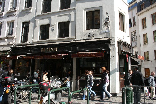 ギャルリー・サンテュベール アールヌーボー様式のアーケード街。日本でアーケードというといけてない商店街を連想してしまうが、こことミラノのものは豪華な風情だ。完成したのは、1847年とのこと、歴史あるアーケード街だけあり老舗の高級店が多い。ガラスの天井に青空が美しい。 朝と日曜は空いているが、普段はものすごい混雑。 ノイハウス ギャルリー内にある王室御用達のチョコレート店「ノイハウス」。日本でもデパ地下にあるし、銀座には路面店もある。 日本との違いは、苺などのフルーツをその場でチョコレート・コーティングしてくれる屋台が出ていたりするところかな。 ベルギー王室御用達のチョコレート店は、4つ。超有名なゴディバに、ノイハウス、ガレ、マリー。 イロ・サクレ地区 ブリュッセルの食い倒れ横丁。歩道にびっしにテーブルと椅子が並べられている。地元の人も通う美味しくてリーズナブルな店もあるそうだが、多くは観光客目当ての高い店。呼び込みしている店は、ぼったくるらしく注意して店選びをしないとならない。 ヌーブ通り ブリュッセル一賑やかな通り。大きなデパートのINNO、ヨーロッパではおなじみのH&M、HEMA、ZARA、C&Aなどカジュアルな店が多く、日本でいう渋谷みたいな所か。若者がとても多い通り。 CITY2という大きなショッピングセンターがあり、地下にカルフール系スーパーGBがある。 |