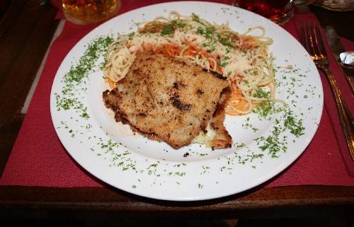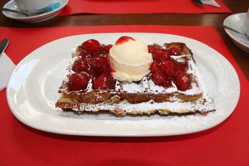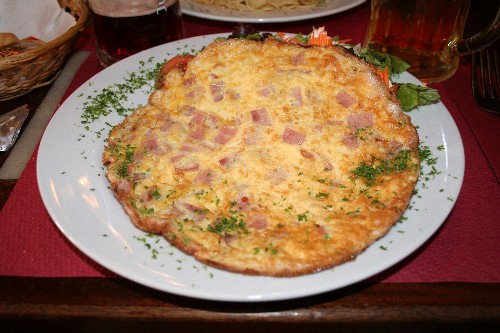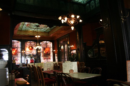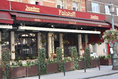 1903年創業、内部のアールヌーボーの意匠にノックダウンされる洒落たビア・カフェ。食事もできる。グランプラスから至近、証券取引所の側にある。 ブリュッセルの料理店は、館内はほぼ禁煙。喫煙席は屋外になる。 現地にて初のベルギー・ビール・ 右手にJupiler。 左手にKriek。 Jupilerは、ポピュラーなピルスナー・ビール。苦味のある一般的なビール。 Kriekは、ブリュッセル周辺のみに存在する菌で発酵させたランビック・ビールにサクランボを入れて再発酵させたもの。味は、チェリー・ジュースのようで、ちょっぴりビールの香りと苦味。 本日の料理。メニューは、フランス語だったので何だかよく分からなかったが、チキンのコルドン・ブルー風なものだった。味は、なかなか。 ハムとチーズのオムレツ。 日本のオムレツは、ふんわり中トロだが、こちらのオムレツは、薄く伸ばして固めに焼く。これはこれで美味しい。 飲むだけなら店の手前の屋外席でもいいかも。 |