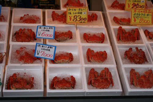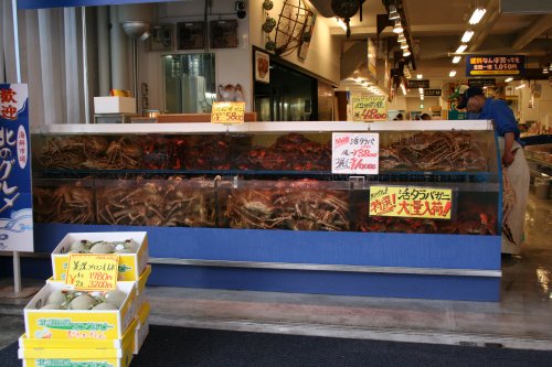 宿泊したホテルは、朝食付だったのだけど、コーヒーだけ飲んで、札幌市中央卸売の場外市場へ。タクシーで札幌中心街から10分ほど。食事するならここでとタクシーの運ちゃんがお薦めの店の前で止めてくれたけど、お店と癒着しているのかなあ? サーモンいくら丼と蟹汁を食べた。うーん、それほど感動なし。わざわざ市場に来なくてもいいかなあと思った。 烏賊の刺身。さばきたてなので、足がぐにゅぐにょ動いていた。さすがに烏賊は、美味かった。 思ったより規模が小さく感じた。歩いていると、「あれ買え、これ買え」と客引きの声が面倒だが、みなすごく親切で気持ちがいい。 蟹、蟹、蟹。こんなに捕って絶滅しないんだろうか。美味しいばっかりに、こんなに並べられて・・・。 水槽にも蟹、蟹、蟹。 夕張メロンもでんすけスイカも売ってたけど、値段の感覚が分からず、安いんだか、高いんだか・・・。 |