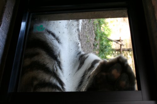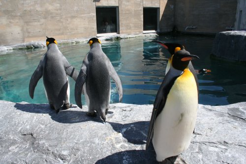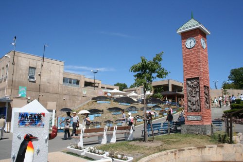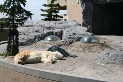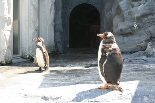 話題の旭山動物園に行った。寒いことで有名な旭川だけど、同時に暑いことでも有名だった。まあ、暑い、暑い、暑い。おまけに名前の通りちょっとした山になっており、暑い中でのアップダウンを歩くのは、つらいねえ。 着いてそうそう食事へ。東門にあるレストランへ。日本一混んでいる動物園だけあり、動物を見るより、実は、園内で食事にありつく方が大変みたいで、昼前に ご飯を食べることにした。この東門のレストラン動物園の斜面の頂上にある建物の二階にあり旭川の街まで見渡せる美しい眺望。テラス席で食べたけど、風があ ると涼しく、とてもいい雰囲気だった。 食事は、カフェテリア方式。好きなものを選んで、ビールを飲んだら2000円を越えた。 スープカレーやじゃがいもが美味しかったかな。ビールは地ビールで、ラベルが北極くま。 サイ。 サイ好きなのだ。一頭しかいなくて寂しそう。 東門から正門へ、結構な斜面になっている。 暑くて、北極くまもダウン中。向こうに見える透明のカプセルから人間を顔出すとアザラシになった気分になれるというのだが、岩陰のくまは見えなかった。 旭山動物園には、「もぐもぐタイム」という時間があり、その時間に飼育員が餌をまく。その時が一番動物がいきいきするので観察するにはもってこいなのだが、その時間にあわせて人もどっと押し寄せるので、なかなかつらい。 餌を貰おうとするチンパンジー。飼育員が投げる餌を全然受け取れない。落としてばかり。 間近で見られるのは、なかなかの迫力。人間が見ているのでなく、猿が人間を見ているように空間が作られているので、猿にストレスがないのだそうだ。 赤ちゃんチンパンジーもたくさんいて、愛らしかった。 こちらは猛獣館のトラ。 猛獣館の猛獣たちは、全てが寝ていた。それも日陰で・・・。ほとんど動かないし、豹などは、前足しか見えなかった。 トラは、うまいぐあいに日陰になる所にガラスがあり度迫力で見学できる。足の肉球がかわいい。 本当に上手いこと肉球がガラスから見えるようになっている。 あざらし館は、一番の混雑で有名な筒状の水槽の周りはものすごい人だかり。またアザラシも上からしか潜ってこないので、下から上がってくる可愛い姿は見ることができなかった。 そ れにしても、暑さで動物が動いていないせいなのか、テレビで放映される旭山動物園は本当に良いシーンばかりのせいなのか、期待していたほど感動がなかった なあ。まあ、動物だから行動はこちらの期待通りに動くわけではないとは思うけど、あまりにテレビで良いシーンを映すので、PRが上手いんだなあと思う。テ レビで見たシーンと同じものを期待すると確実にがっかりする。 そしてものすごい人混みにうんざりすると思う。僕らが行った日は、珍しく空いていた日で、園内で食事ができたと言ったら、バスガイドさんが驚いていた。 空飛ぶように泳ぐペンギンの水槽も濁っていてあまりペンギンがよく見えなかった。ちょうどもぐもぐタイムで餌をまいていたのだけど・・・。 しかし、野外のプールの前にいたペンギンは可愛かったなあ。それもものすごく近くで見られるので、羽毛の色がとてもじっくり観察できた。 ペンギンがたくさんで行進する姿には、ノックダウンされた。 雛もいた。 やっぱり、この動物園は、冬に来るところなのかなあ。 いろんなペンギンがいた。 |