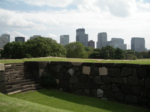 皇居東御苑に行った。ここは、日本で一番大きかった天守閣の跡。明暦三年の大火で焼失してしまって以後再建されなかった。天守閣は、言わば有事に籠城する 場所。平和だった江戸時代には、あまり必要なかったのかな。しかし、眺めは良かっただろうなあ。エスカレーターやエレベーターも無い時代、着物を着て上り 下りすること考えるとやっぱり天守閣があってもそうそう上るものでもないんだろうな。 いやあ、本当に大きい。 上に上ると、この高さでも良い眺め。皇居の周りには、あまり高い建物が無いので、360度見渡せる。 昔は、皇居を見下ろすなんてとんでもないってことだったのか、丸の内には、高層ビルは無かった。でも、最近は、建て直してにょきにょき高くなってきたな あ。丸の内のビル群は、敷地面積も大きいので、高さは新宿の高層ビル街に及ばないものの、ビル一つ一つの存在感、荘厳さでは圧倒的だ。 |