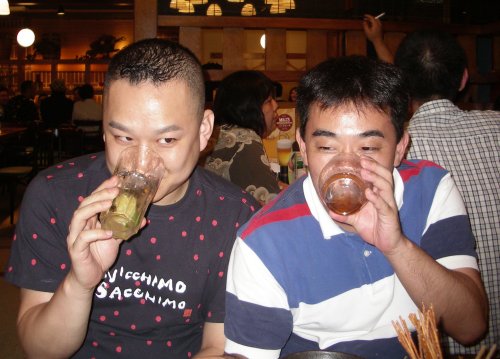 前座さん。歌武蔵師匠のお弟子さんだそうで。今日、二度目の「転失気」だが、流れもサゲも違うバージョン。この方、前座にしてはよく出来た噺運び。もと落研かしら? 文ぶん 「青菜」 夏らしい選択。ちょっと斜に構えた厭世的な雰囲気がこの人の魅力。後半の暑苦しさがもっと出て入れば前半の涼しげな部分と対比がもっとあったのになあと思った。 弥助 「粗忽長屋」 二つ目になって、ぶくぶく太っていく噺家さんは、たくさん知っているが、この人は、太らないねえ。というか、痩せすぎ。されど、そうした風貌か、この噺には、とても合うねえ。自分が死んだと思い込む情けない男の描写が妙にリアルだ。 仙志郎 太神楽曲芸 仙一から改名。この方は、物腰丁寧でとても好青年の印象だ。スマートなサラブレッドだね。 三之助 「ねずみ」 会の後、三之助さんとも話したのだけど、この噺、甚五郎もののようで、実は、主人公って誰なんだろうって思った。誰に焦点を当てていくのか、その辺の構成が今後の楽しみかな。 聴きどころは、やはり、ねずみ屋の主人のモノローグ。登場人物が少ないこの噺で、このモノローグの回想シーンが一つのクライマックスだろう。ネタ卸しだけど、流石にこのシーンは、聴かせどころだったね。 三之助さんは、とにかく落語に対する真摯な姿勢が素晴らしい。噺をどう自分の中へ取り込み、そしてどう料理していくのか、同じ噺でも次に聴く時がとても楽しみだ。 同じ噺を何度でも聴きたい、三之助は、そういう噺家だ。 この間のノスケの時は、風邪気味だったので、久しぶりの打ち上げ参加。楽しげに飲んでいる噺家と客というより、なんか悪巧みにほくそ笑んでいる輩みたいだなあ。 左の方が落語会一の微笑みの貴公子、柳家三之助さん。落語以外にも、本も書き、インターネット落語会のナビゲートもし、パソコンも自在に操り、各種パンフレット、チラシのデザインから印刷までしてしまうという、とても多才な人なのだ。 |