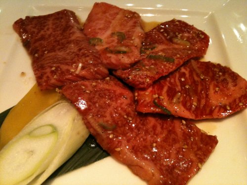 とんかつが食べたいというにっし君のリクエストでとんかつを食べ、また銀座中のいろんな店を徘徊し、また小腹減ったというのでにっし君お薦めの焼肉屋さんへ。僕は、ホルモンは苦手だと言っているのに、「ここのは大丈夫、食べられるから・・・」と連れて行かれる。 ホルモン焼き屋=汚い店という勝手な固定観念があったけど、すごく綺麗で清潔な店でびっくり。溶岩プレートみたいなものの上で焼いたり、網とそのプレートで肉を挟んで焼いたりとなかなか面白い。 なんだか分からんけど、にっし君のお任せのままいろいろ食べたよ。 これが、美味しかった。 うーん食わず嫌いは、いけないね。また一つ食のレパートリーが増えたよ。 鳴尾 銀座本店 東京都中央区銀座3-9-4 第一文成ビル1F 03-3549-1329 |