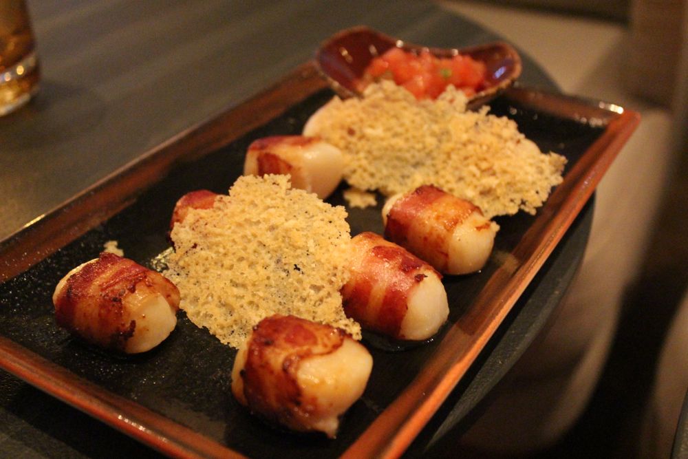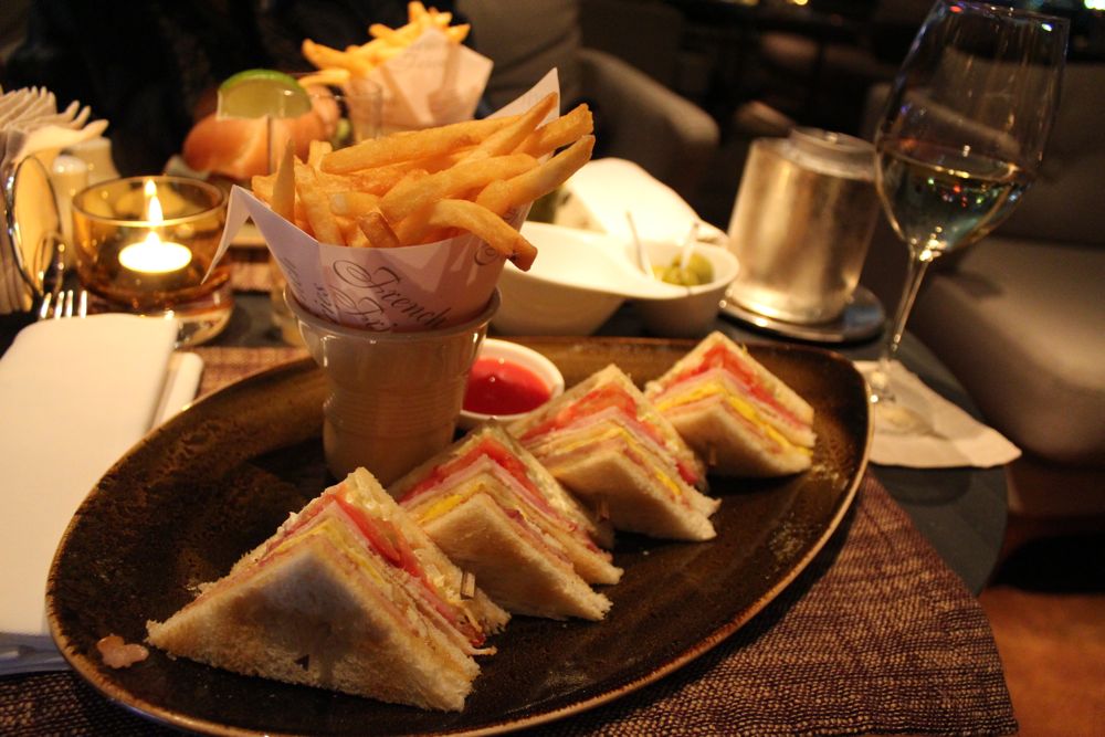 世界最高の眺めのロビーラウンジの言ってもいいくらい素敵な場所。ここに泊まった時は、夜は必ずここに来る。部屋とは違う巨大なガラスの向こうに広がる香港の摩天楼は、この街のダイナミズムを感じる。 眺めだけじゃない、ここのラウンジの魅力は、バンドの生演奏。いろんな曲が演奏される。ムーディーだよ。お客さんのリクエストにも応えていたね。どうやってリクエストするんだろう。そういう時のチップは、いくらくらいなのかなあ? ホタテをベーコンで巻いたもの。これ去年も食べた。大好き。かりかりに焼いたチーズも最高。 BLTサンド。ポテトが美味しい。(笑) 白ワインを傾けながら、音楽にも酔いしれる。深夜までくつろいじゃった。 |