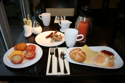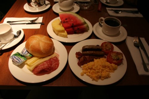 ここは、今回の旅行で泊まった中でホテルスタッフのサービスが一番しょぼかったな。質問すると答えるのに、聞かれる前にちゃんと説明しろってことを何もし ない。「朝食付きプランですよね?」に対して、「あらそうでしたっけ、ちょっと待って確認するわ、ああ、本当、そうですね。」、それで「レストランはど こ?」に対して、「あ、ええと、ロビーのその横を左・・・」、「インターネットも使えるプランですよねえ?」、「あら、そう?」とこちらのコンファメー ション・レターを見せてようやく「そうですね、そういう設定にしておきます」とか、まあずっとこんな感じ。疲れたよ。おまけに眺めが悪い方の部屋をよこす から、取り返させた。もうプンプン。
