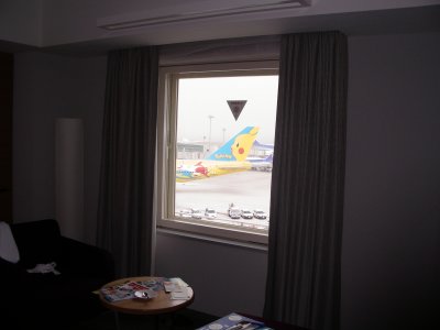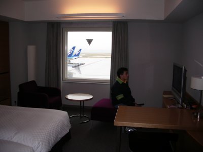 目の前が滑走路だが、全然騒音がしない。外の音は、全く聞こえない。ものすごい、防音だ。すごい。