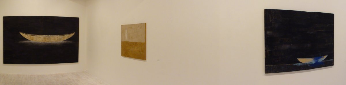 事前にいただいていた案内で今回の変化の片鱗を知ってはいたのだけど、実際ギャラリーに入った時に、思わず「ええっ」と声を上げてしまった。 彼がずっと描き続けてきたモチーフ「丘の上の家」が「灯台」と「船」に変化していたのだ。 色調も黒をベースにしたダークなものが多かった。 「灯台」と「船」という結びつきやすいモチーフだが、それぞれが同じキャンバスの上には載っていない。「船」の絵と「灯台」の絵が別々だけれど、同じ空間に陳列した時に、イメージの世界は無限の広がりを作り出す。 入って正面に飾られている漆黒の闇に浮かぶ「船」は、その中にスポットライトが浴びているように、しかしそれは煌びやかではなく、柔らかな光で、木彫りの船の質感が驚くほどリアルだった。 興味深かったのは、「灯台」の絵だ。灯台は、丘の上に立っており、海や水が描かれていない。丘の上の灯台は、光で何かを導く必要がないのに光を出している。これはこれで不思議な世界観があり、また彼の絵のこれまでのモチーフであった「丘の上の家」のように、切り取られた心象風景だ。 されど、同じ空間に並べられた「船」の絵が、その空間に水を想像させる。狙ったものなのかどうか分からないが、これは面白いと思った。 「船」の絵に「灯台」。光に導かれるように、この「船」は、故郷の港に帰って来たのか、はたまた見知らぬ地への旅の途中なのか、いずれにせよこのギャラリーに留まらないどこか別の場所へ、いつの間にか見ている者も旅立っているのだ。 10月2日(土)まで 『加藤 雄太 展 ―時は寄る辺のない海にも似て―』 11:00~19:00(最終日は17:00まで)