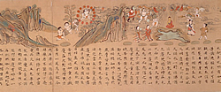 な んと言っても目玉は、あの応天門の火災のシーンで有名な国宝「伴大納言絵巻」だ。ちょうどその応天門の炎のところを見せている。まるで、炎が生きているよ うなすごい描写、黒煙の中に蠢く赤い炎、恐怖に慄く民衆に惹きこまれる。すごい、すごい、すごい。この展覧会、途中で展示替えをするので、この「伴大納言 絵巻」が観られるのは、会期前半の5月23日まで。(ただ、秋に全巻公開がある予定) また、出光美術館の魅力は、ロビーからの皇居の眺め。まるで一枚の美しい絵画のようで、これにもうっとり。 |