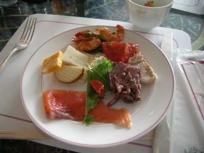 ロイヤルパークホテル20階のオルフェウスでブッフェ。眺めも良く、またブッフェにしては料理のグレードも高く美味しい。 ほかにもたくさん食べた。洋食、寿司、中華、パン、デザート、チーズとなんか盛り沢山。珍しかったのは、コシヒカリのアイス。 ロンネフェルトの紅茶があったのでみんなでいろんなテイストを楽しむ。紅茶の香りでくつろぐ午後は、優雅だなあ。 |