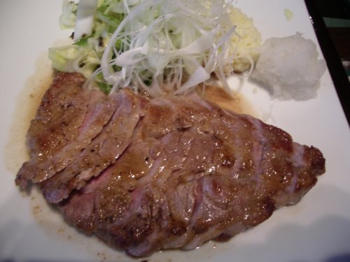 夜は、しゃぶしゃぶの店。ランチタイムは、1000円でポークソテー、ハンバーグ、チキンカツなどの定食が食べられる。付け合せの野菜の他にサラダやスープなども付き、また小奇麗な店内のためか、女性客の比率がとても高い。