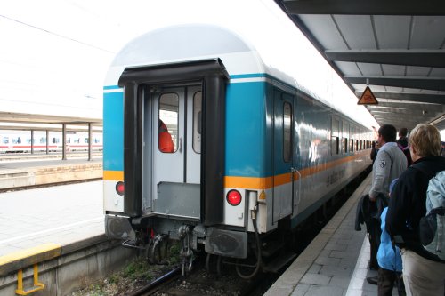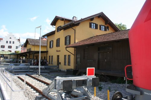 さて再び、列車で移動。途中駅までは、ALEX(Allgaeu-Express)というバイエルン州の地鉄で移動。この列車の車両、ぼろい。途中駅で一旦降りて、30分その駅で待ってドイツ国鉄に乗り換える予定だった。困ったことにこの列車、そもそも時刻表に「この列車は、15分遅れるかもしれません」って書いてある。なんのこっちゃ?って感じ。まあ、乗り継ぎに30分余裕があるから大丈夫だろうと思ったら、なんと出発が30分遅れ。アナウンスはドイツ語しかないし、車掌をつかまえて尋ねるも英語はまったく通じないし、困っていると、ドイツ人の若い女性が英訳してくれた。どうも線路工事の影響で遅れるらしく、乗り継ぐ予定の列車は”多分”乗り換え駅で待っていてくれる、とこのことだった。 しょうがなく30分遅れの電車に乗るが、途中の駅でもなんでもないところでまた15分も停車している。この時もドイツ語の説明しかなく、何が起きているのか全く分からず。ノロノロ動き出して、結局1時間遅れで乗り換え駅に到着。乗り継ぐはずの列車(ドイツ国鉄)は、待っているはずもなく、その駅のホームで1時間次の列車を待つ。 予定より随分遅れて、フュッセン駅に到着。なんとも寂しい終着駅だが、フュッセンは小さいながらも美しい町だ。 |