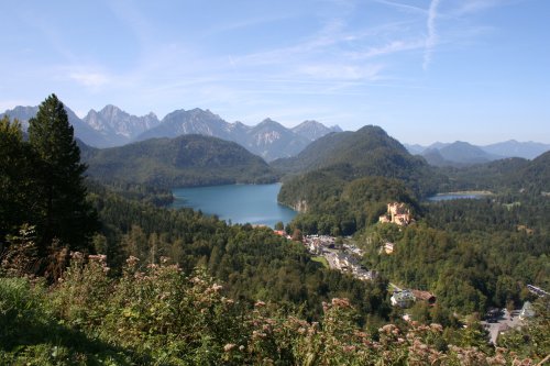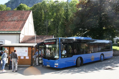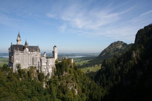 ホーエンシュヴァンガウ城より遥かに高台にあるノイシュヴァンシュタイン城へは、歩いて40分の登り道か、バスまたは馬車で向かう。この日は、ちょっと暖 かかったのと、ホーエンシュヴァンガウ城の見学が随分時間がかかったためバスを利用する。しかし、バスに乗るにかなりの行列だった。夏のオンシーズン時 は、相当時間に余裕を持っておかないとツアー開始時刻に間に合わないことも。 高台にあるので途中の眺めも本当に素晴らしい。森と湖と家々の町並みには、ため息がでる。そして、ここに行ったことがある人も、ガイドブックも、最も美しいノイシュヴァンシュタイン城の眺めと語るマリエン橋へ向かう。 一瞬、目を疑った。城が崩れている? いや、壁面が大修復中だ。なんという無残な姿。思わず、へなへなと腰がくだけたよ。全く、この修復いつまでやるんだろう。また見に来なくちゃ。 さて、ツアーは、やはり英語ガイドのパーティーが人が多い。今度のガイドは、若い人で冗談一つ言わず、見学者の質問に答えず、棒読みみたいでお化け屋敷の案内人みたいに顔色悪く、声色も不気味でちょっと怖かったなあ。 ノイシュヴァンシュタイン城は、思ったより小さく感じだ。そりゃ、山の上に立つ城としては大きいのだけど、ヴェルサイユとか見ちゃうとねえ、やっぱり小さく感じちゃう。 それでもワーグーナーのオペラを現実の世界に再生したような作りは、これぞロマンと空想力の結集という感じ。また、当時の最新技術を取り入れた照明や電話、調理器具には、今でもそのまま使っても贅沢と思えるほどすごかった。 城には、広い中庭があって、ここに城で一番大きい塔を建設する予定だったらしく、基礎部分だけが残っていた。 膨大な国費を使って、自分の夢の世界を実現する、なんともすごいけどちょっと現実離れしちゃったのかな。それでもこのワーグーナーの世界は、一見の価値あり。 ここも城内は、撮影禁止。 |