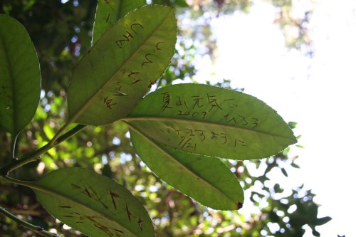 参道は二つある。こちらは、春は桜、秋は彼岸花が美しい。 総門。 山門。小さいながらもとても美しく惹かれる。紅葉の季節は、色づいた公孫樹で一面黄色の世界になる。 立派な茅葺屋根の本堂。 裏庭には、小さな池と森、そして墓所が広がる。 タラヨウの木の葉に願いごとが切り刻まれていた。なんかちょっと惨いなあと思ったがあ、何か所以があるのだろうか? これがそのタラヨウの木。立派な枝ぶりの巨木だ。 こちらも20メートルを超えるカヤの木。 |