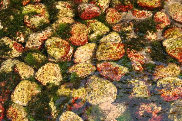 水の流れと不思議な色をした石。 |