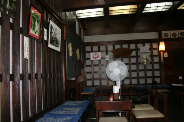 店内は、こんな雰囲気です。江戸時代のご贔屓のお客さんの札なんかが壁にかけてあった。