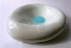 驚くべきは、亜鉛華結晶の柄。白磁にまるで華が咲いたような美しさ。これ、写真では全然分からないけど、肉眼で本物を見るとびっくりするよ。 川村さんは、現在イギリスで活動されているそうで、今回は、凱旋帰国だね。写真の磁器は、もう買い手がついていた。納得。ペーパーウェイトや小鉢など、手頃な価格のものもあり、涼しげなフォルムは、夏にぴったしだ。 今日子と書いて、「いまひこ」と読むんだって。 本当に美しいから、機会があったらぜひ間近で見て! 川村 今日子磁器展 8月24日まで、松屋銀座 7F アートスポットにて。 |