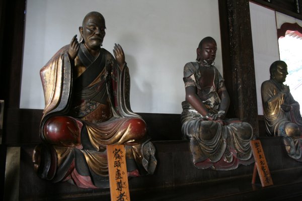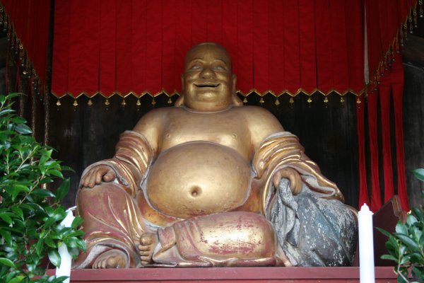 1654 年(江戸時代)、中国福建省から渡来された隠元禅師が後水尾法皇や徳川四代将軍家綱公の尊崇を得て、1661年に開創された代表的禅宗伽藍の寺院で、日本 三禅宗(臨済・曹洞・黄檗)の一つだそうです。そのためか、境内は、中国風の意匠があちこちに感じられ独特の雰囲気です。訪れる人もそれほど多くなく、と ても贅沢な空間と時間を感じることができます。 本当は、こちらで普茶料理を味わいたかったのですが、3名以上で要予約ということで、ダメでした。普茶料理は、隠元禅師が中国から伝えた精進料理のことで、高タンパク低カロリーなヘルシー料理です。ああ、残念。 天王殿に鎮座まします弥勒菩薩像は、なんと布袋様です。金キラキンで、微笑むその姿にびっくりやら微笑ましいやらで、なんともここは違うぞ、という期待がふくらみます。 魚の形をした鳴り物、食事の合図を叩いて知らせるものだそうです。 おみくじがだるまでした。白か赤のだるまを掴んで、その中におみくじが入っています。洒落てます。 説法を行う法堂(はっとう)で、寺の一番奥にあります。 法堂正面の匂欄は、卍及び卍くずしの文様になっています。 萬福寺の本堂である大雄宝殿。ご本尊の他に十八羅漢像が安置されています。 中華風な意匠がなんともいいアクセントになっています。 贅沢な空間に和と中が交わったなんとも言えない素敵なお寺でした。また、訪れたいです。 |